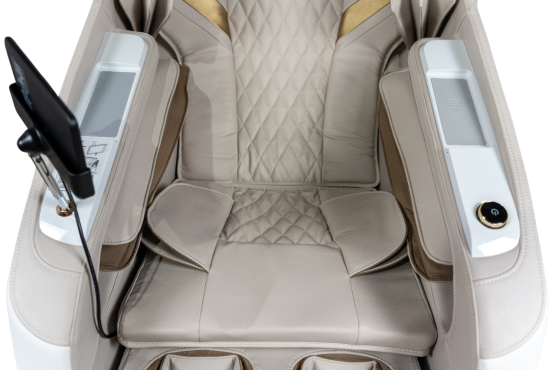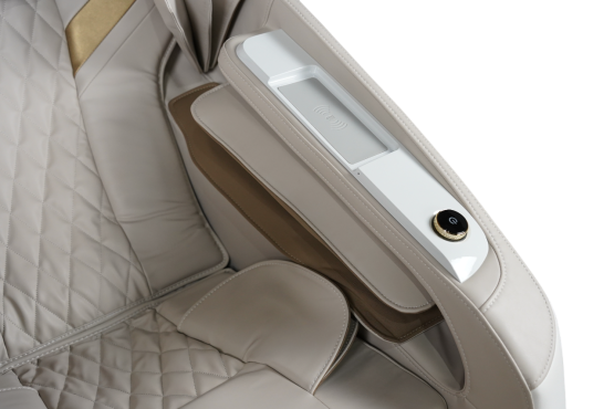 Управляйте вашим массажным креслом умным, и конечно, интуитивно понятным 7-ми дюймовым сенсорным пультом управления, все современные технологии кресла у вас в ладони. Панель управления (с поворотным механизмом) быстрого доступа в подлокотнике избавит вас от лишних движений во время массажа, если вы захотите что-то скорректировать в нем. И куда без подзарядки вашего смартфона - все под рукой, наслаждайтесь в полной мере!