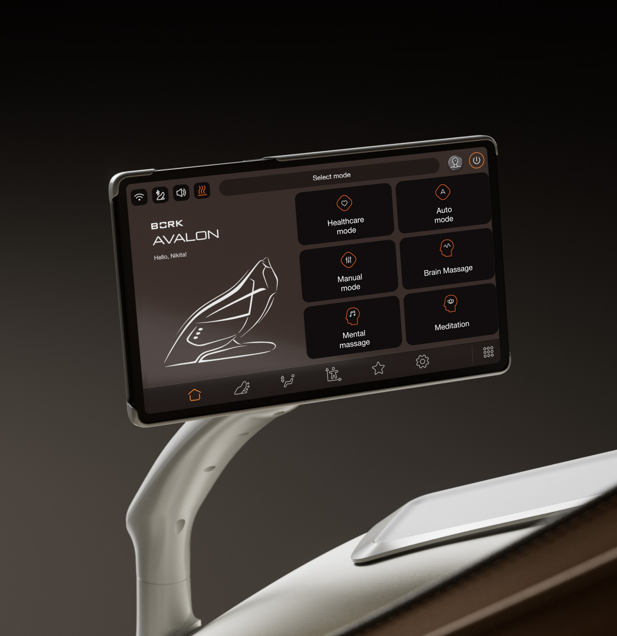 Для комфортного сеанса массажа BORK AVALON автоматически выезжает, раскладывается и подстраивается под ваш рост. Специальный датчик обеспечивает полную безопасность детей и животных при опускании капсулы.