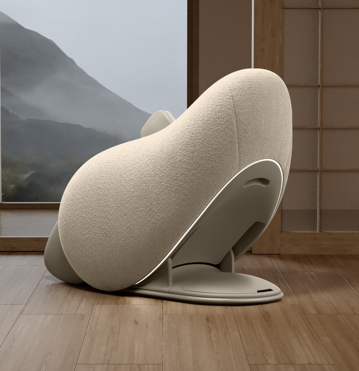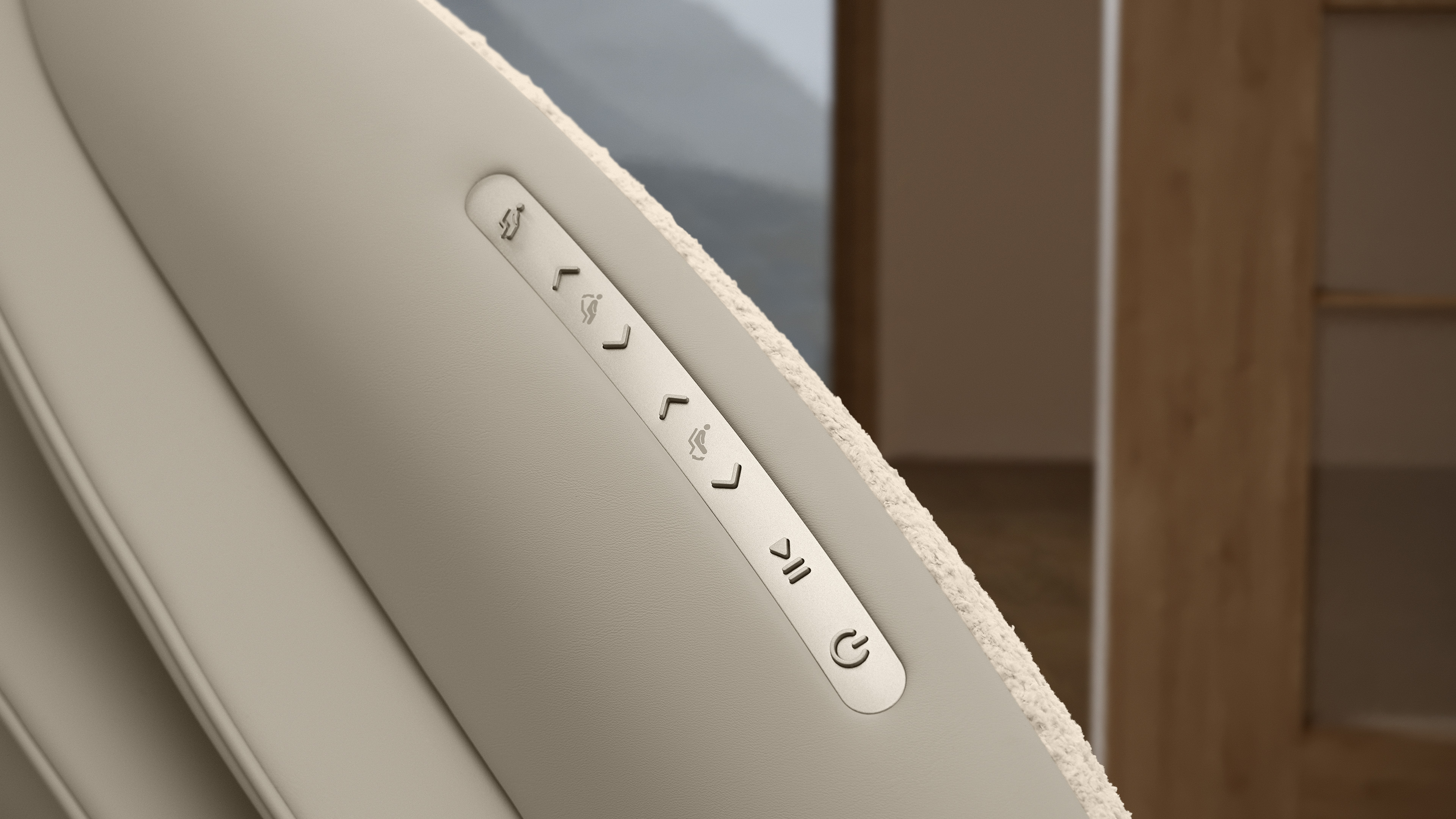 Первое и единственное массажное кресло в базовом белом оттенке, которое выступает полноценным элементом мебели. Для модели предусмотрены сменные боковые панели с разным оттенком и типом ткани для гармоничного сочетания с интерьером.