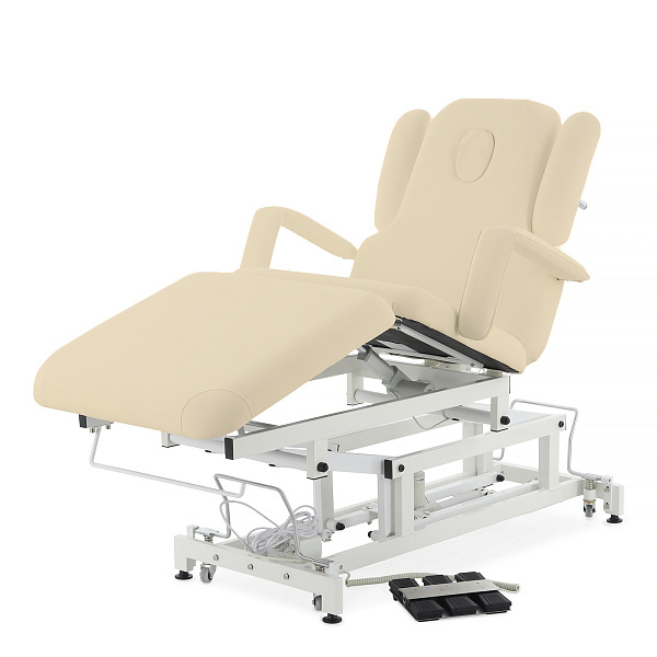 Угол наклона ножной секции в позицию «шезлонг» позволяет пациенту занять специальное положение для расслабления всего тела.