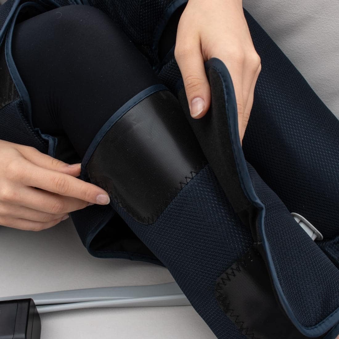 Компрессионный массажер для ног удобен в использовании, так как учитывает физиологические особенности строения левой и правой ноги. А благодаря расширителям, которые увеличивают зону охвата – массажер подойдет для людей разной комплекции.