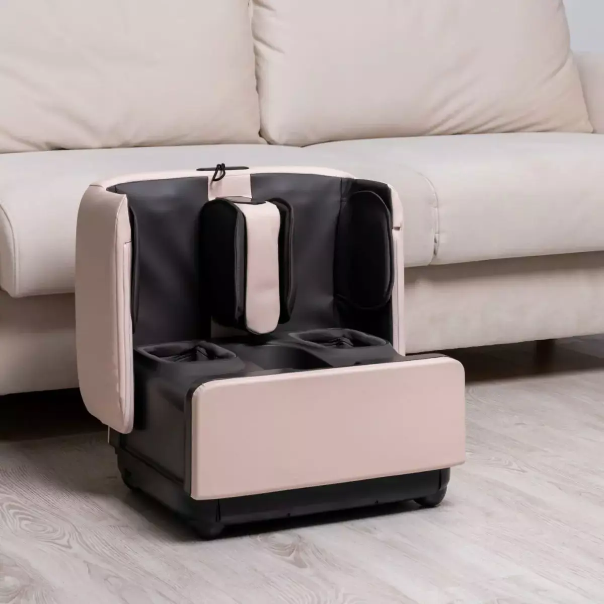Массажер для ног с несколькими видами массажного воздействия: роликовый, акупунктурный, воздушно-компрессионный и вибромассаж.
