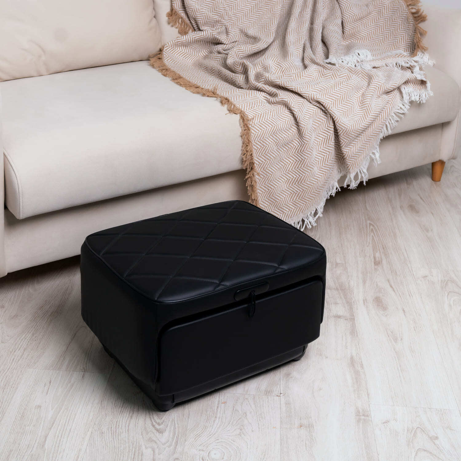 Массажер для ног в сложенном виде имеет уникальную форму пуфика, он не будет выделяться, его можно хранить на видном месте и использовать как отдельный предмет интерьера.