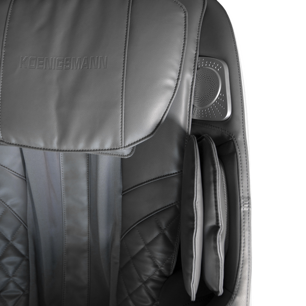 С помощью данной системы вы сможете поставить кресло вплотную к стене. Когда Koenigsmann Lindorm не используется, вы держите устройство в сложенном состоянии, и оно никому не мешает. Когда пришла пора ощутить невесомость, расслабиться, послушать приятную музыку, привести нервы и мышцы в порядок, вы легко раскладываете массажную систему и — погружаетесь в мир целебного релакса!
