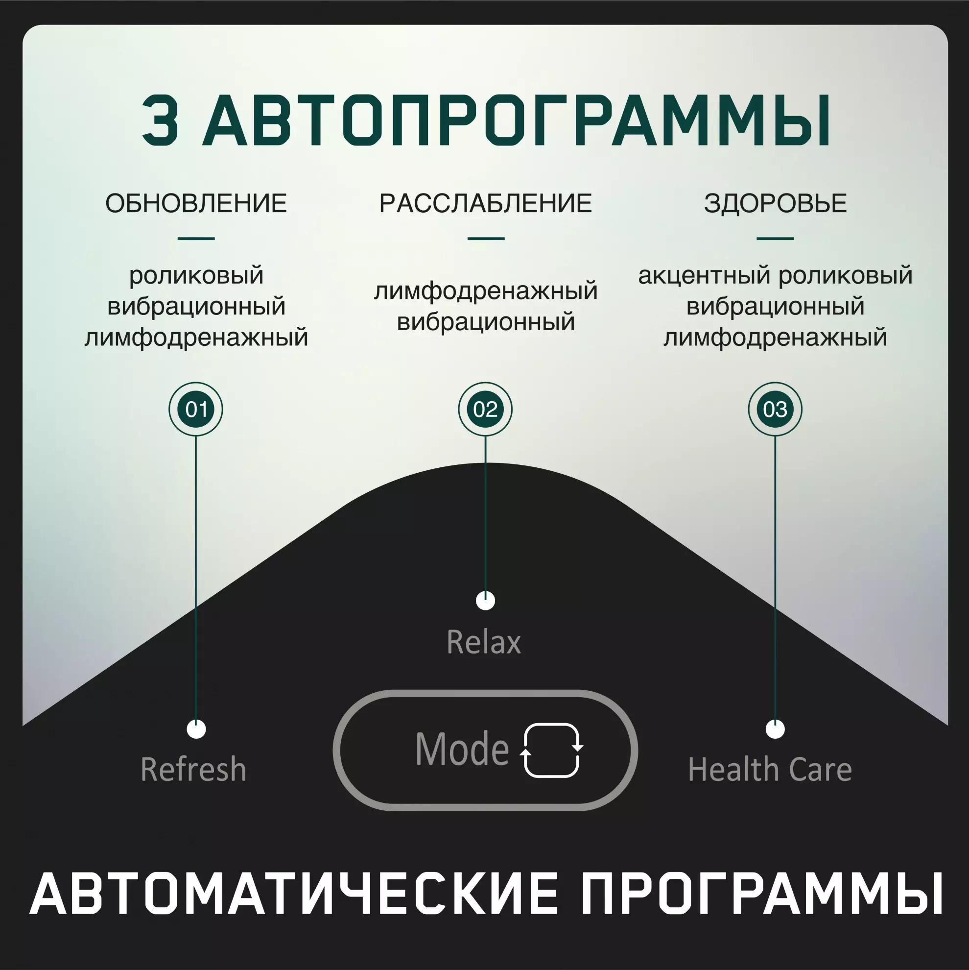 | 3 уровня интенсивности воздушно-компрессионного массажа. | |