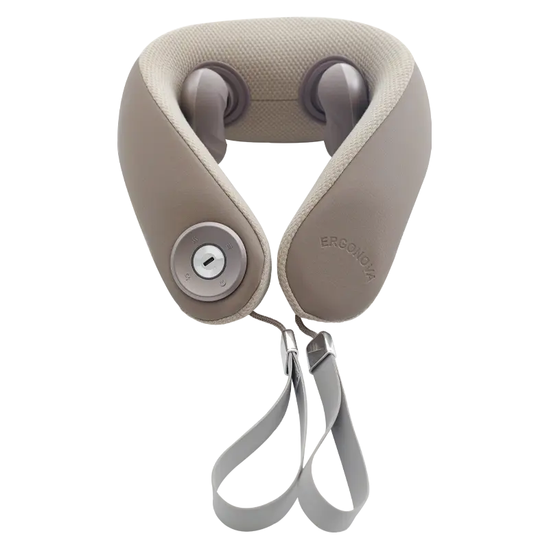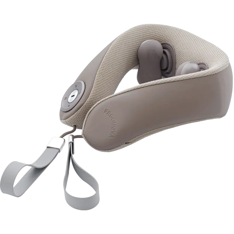 Массажер идеально располагается на шее, а вы лёгкими движениями управляете интенсивностью массажа, натягивая и ослабляя ручки-ремни.
