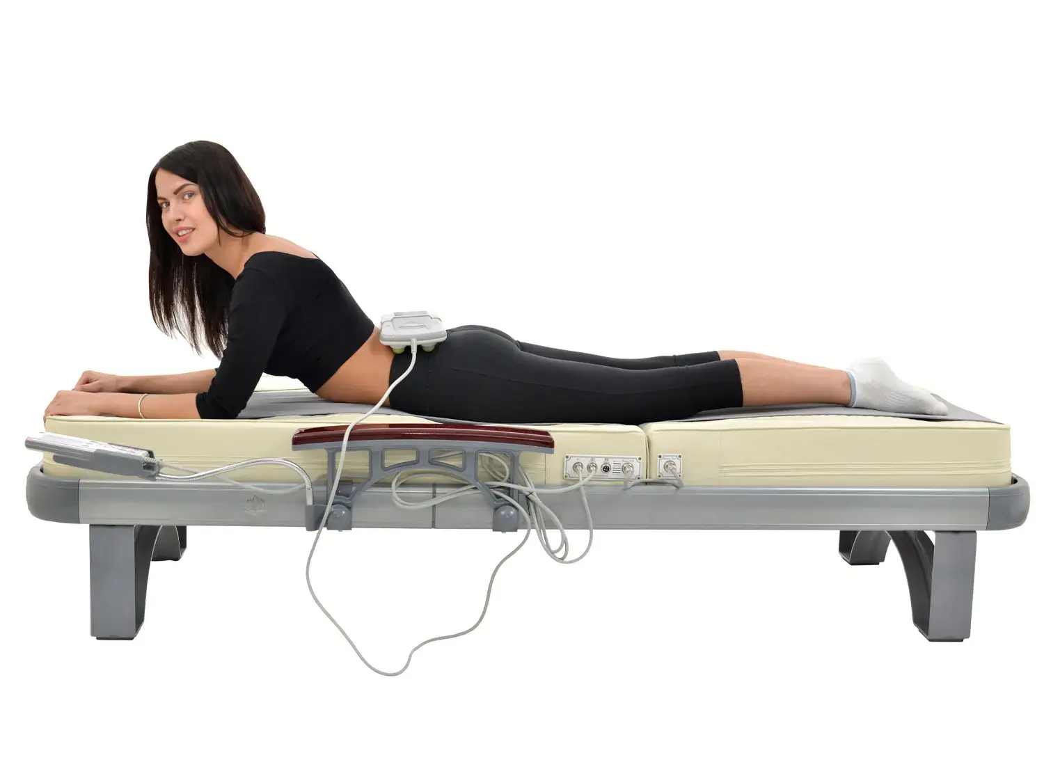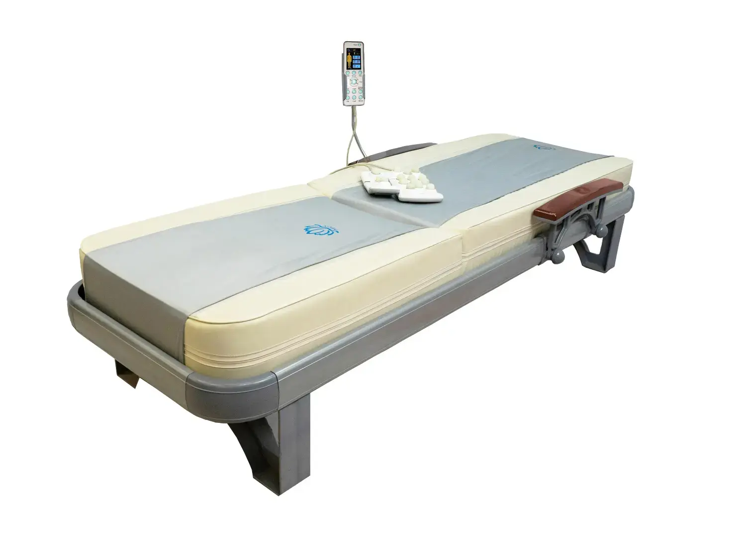 Уникальная термо-терапевтическая кровать отличается многофункциональностью и роскошным дизайном. Верхний и нижний матрасы оснащены двумя блоками массажных роликов, которые установлены на прочной алюминиевой раме с карбоновым покрытием. Это обеспечивает не только безупречный комфорт, но и эффективный уход за вашим здоровьем.