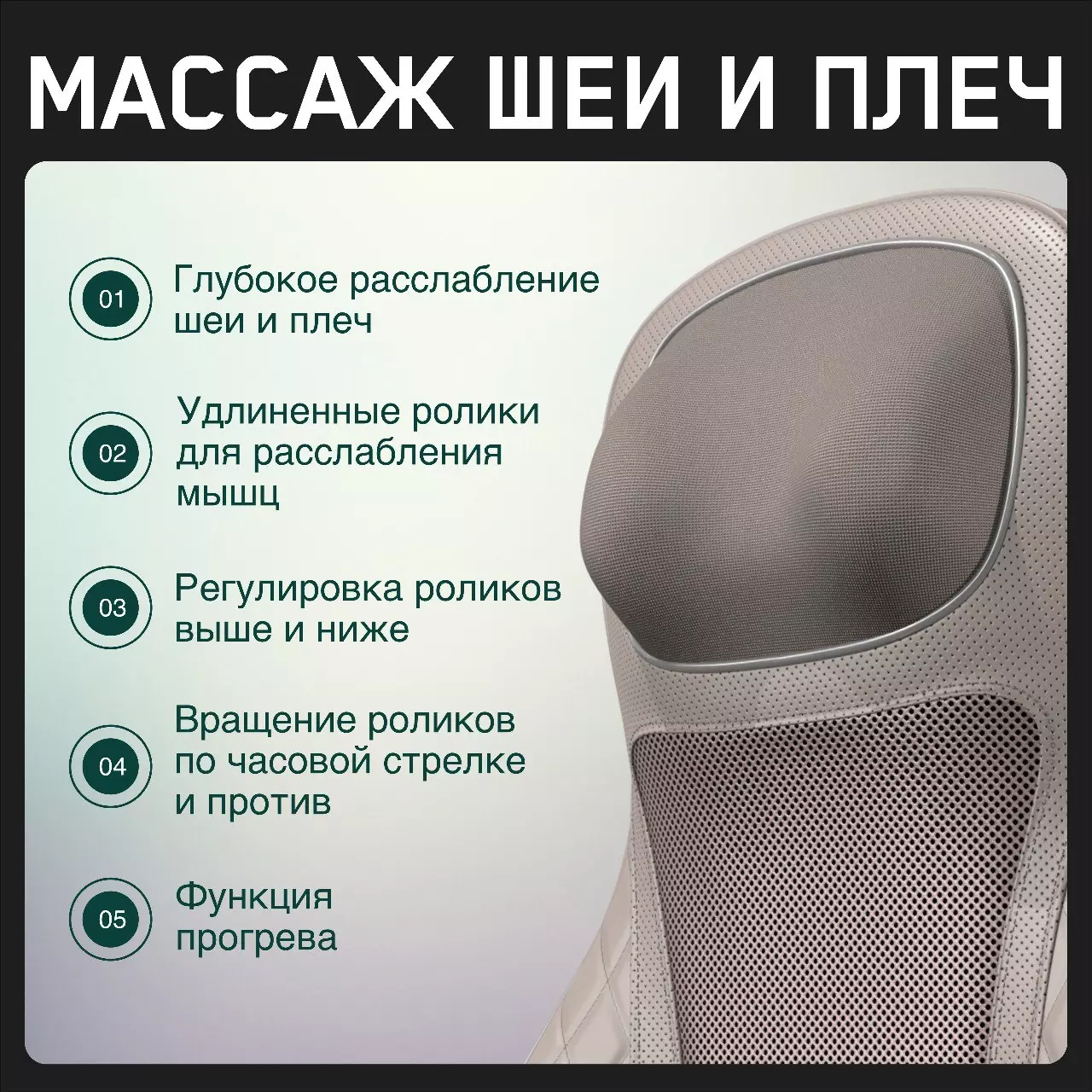 Отдельная пара удлиненных роликов установлена для массажа шеи и плеч. С пульта можно отрегулировать положение роликов, чтобы подстроить их под свой рост. Также можно выбрать массаж по часовой стрелке или против нее.