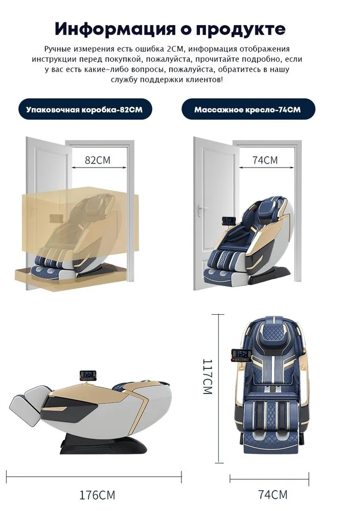 Кресло оснащено различными функциями массажа, такими как вибрационный, воздушно-компрессионный и роликовый массаж, что позволяет эффективно расслабить мышцы и улучшить кровообращение.
