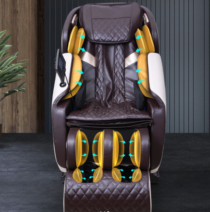 Воздушные подушки расположены в пяти различных областях кресла. Непревзойденный воздушно-компрессионный массаж с 30-ю воздушными ячейками и 5-ю уровнями интенсивности позволяет мышцам полностью расслабиться в тех частях тела, которые часто упускаются из вида в других массажных креслах.