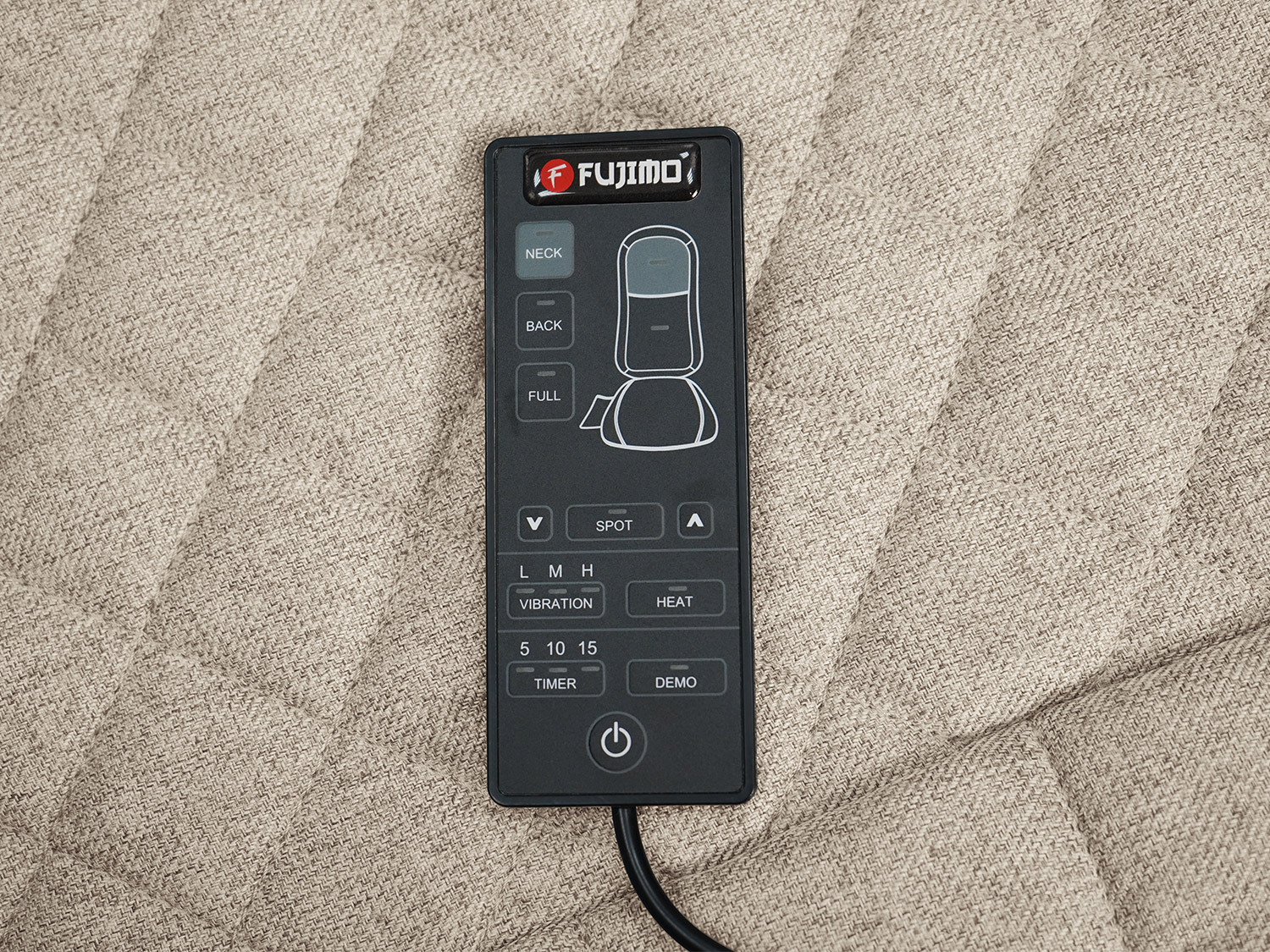 - Проводной пульт управления хранится в боковом кармане кресла
