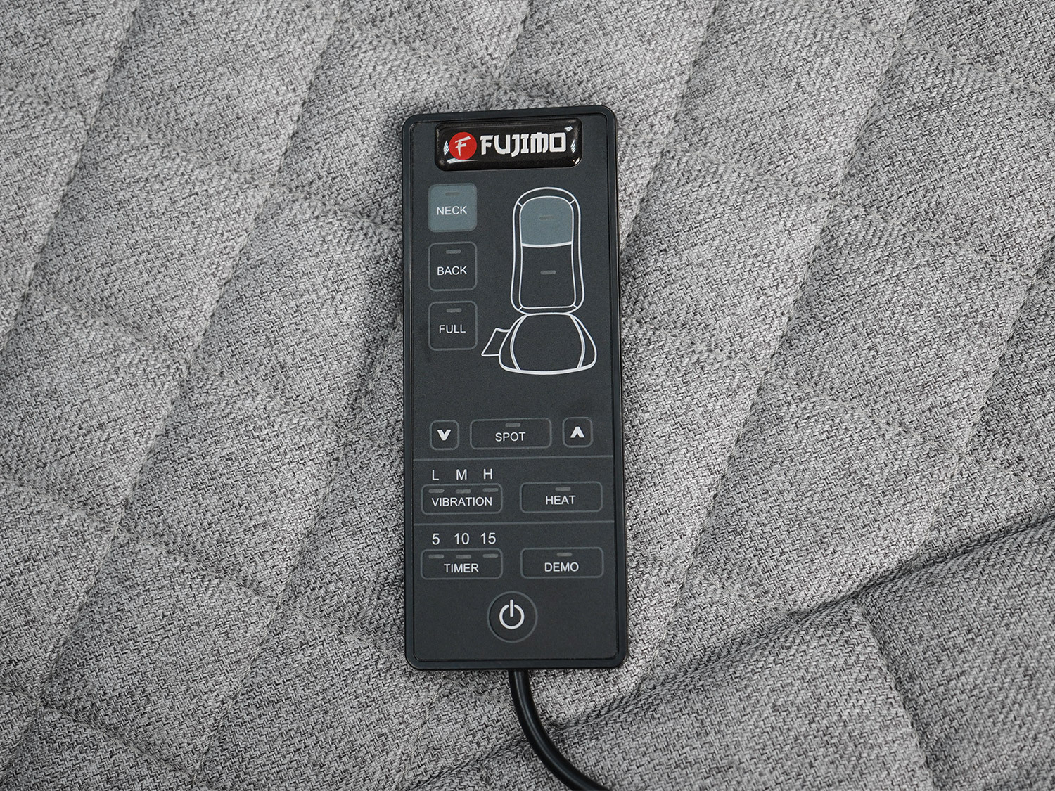 - Проводной пульт управления хранится в боковом кармане кресла