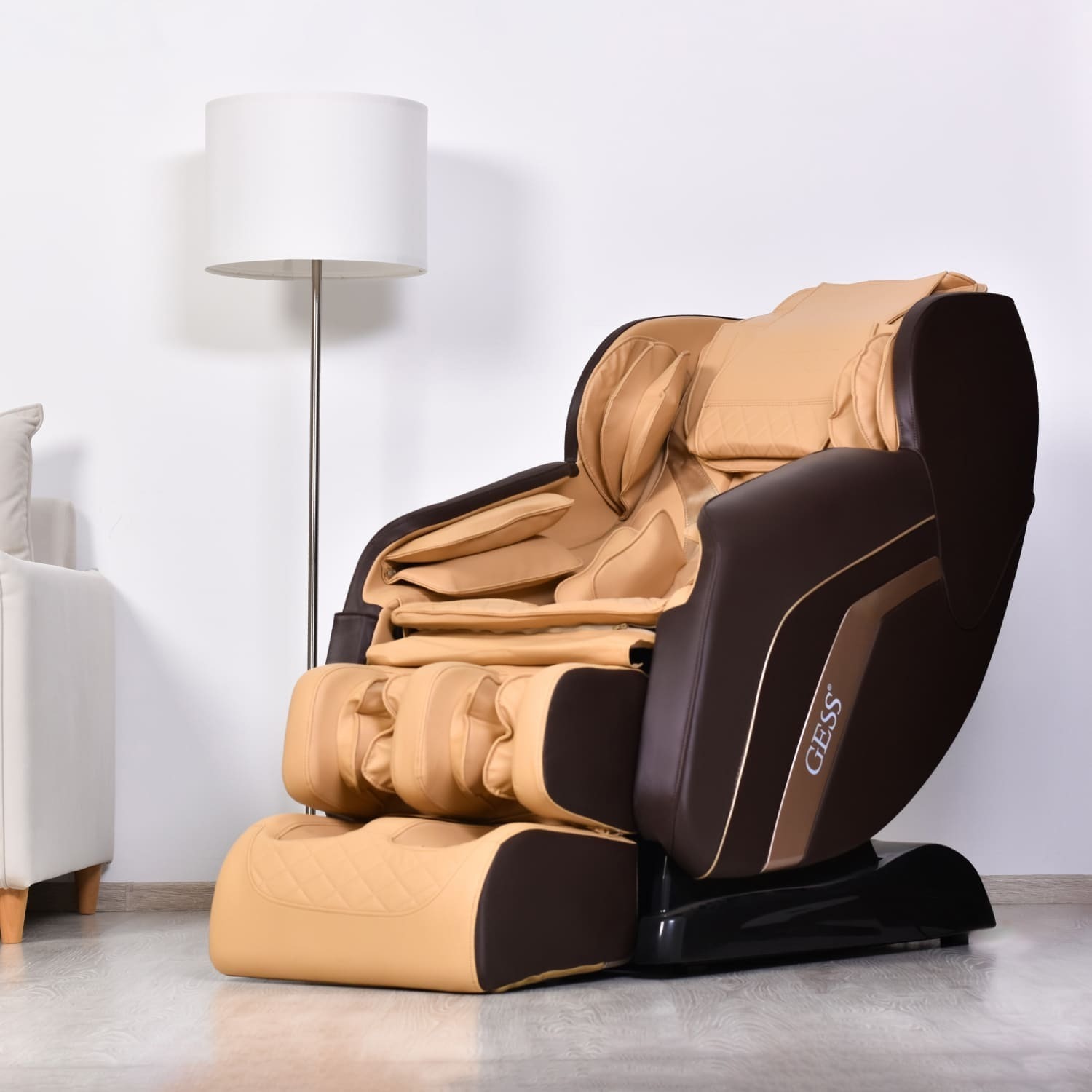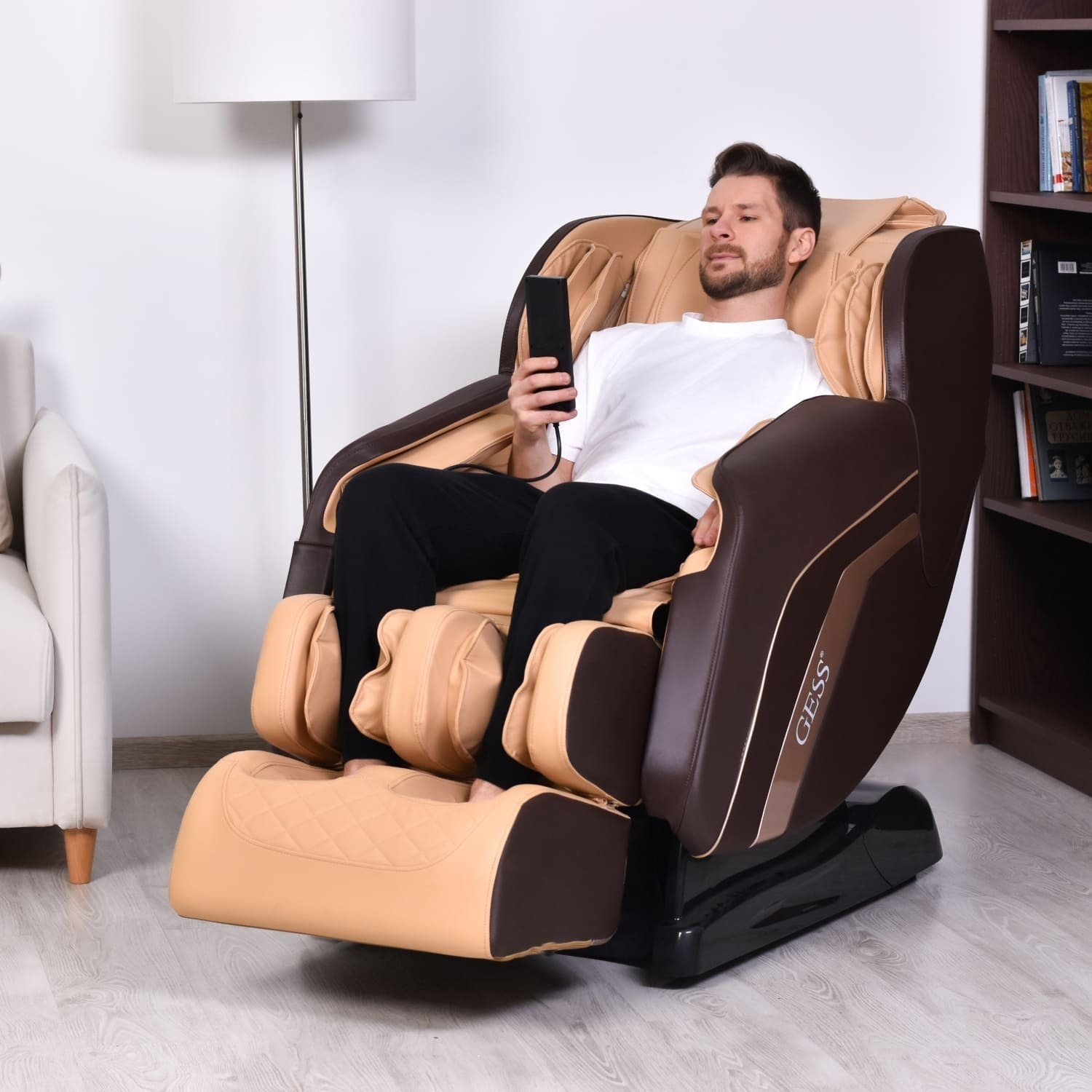 Массажное кресло нового поколения с объёмными массажными роликами позволит эффективно размять мышцы дома и в офисе. В ручных программах можно настроить положение массажных роликов и проработать проблемные зоны. Функция Zero-G поднимает кресло в комфортное для массажа положение, при котором ноги будут на одном уровне с положением головы. Эта функция помогает снять давление с позвоночника и суставов. Массажная конструкция для ног удлиняется на 12 см, что позволит использовать кресло людям с любым ростом. Вы можете подключить Bluetooth для прослушивания музыки через ваш телефон, у кресла есть встроенные колони. Управлять режимами и настроить работу кресла под себя очень просто. На понятном пульте управления можно индивидуально подобрать интенсивность массажа спины, интенсивность подачи воздуха для воздушно-компрессионного массажа. Отдельными кнопками можно отрегулировать расположение роликов. Длина L-образной массажной каретки 110 см. Таймер 5-30 минут.