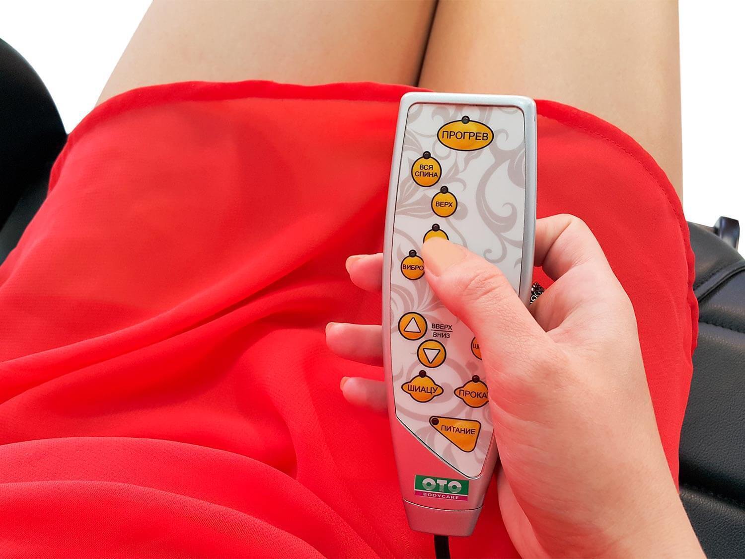 - Русифицированный пульт управления и шнур питания хранятся в заднем кармане спинки кресла