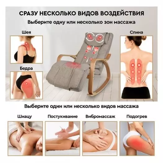 - Уникальное сочетание кресла-качалки и массажного кресла, благодаря которому во время массажа достигается максимальное расслабление всего тела.