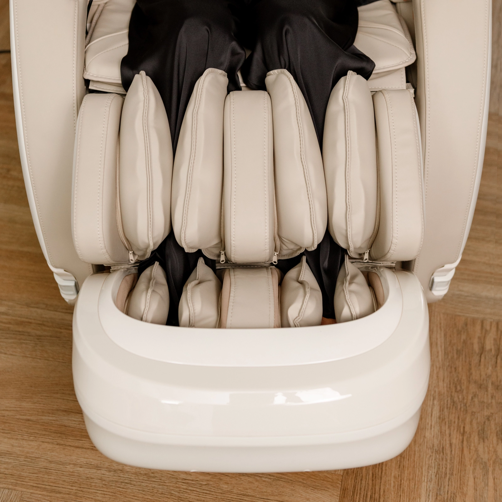 Четыре ролика в спинке и пятьдесят шесть роликов для стоп в сочетании с двадцатью восемью воздушными подушками создают полноценный массаж от шеи до стоп.
