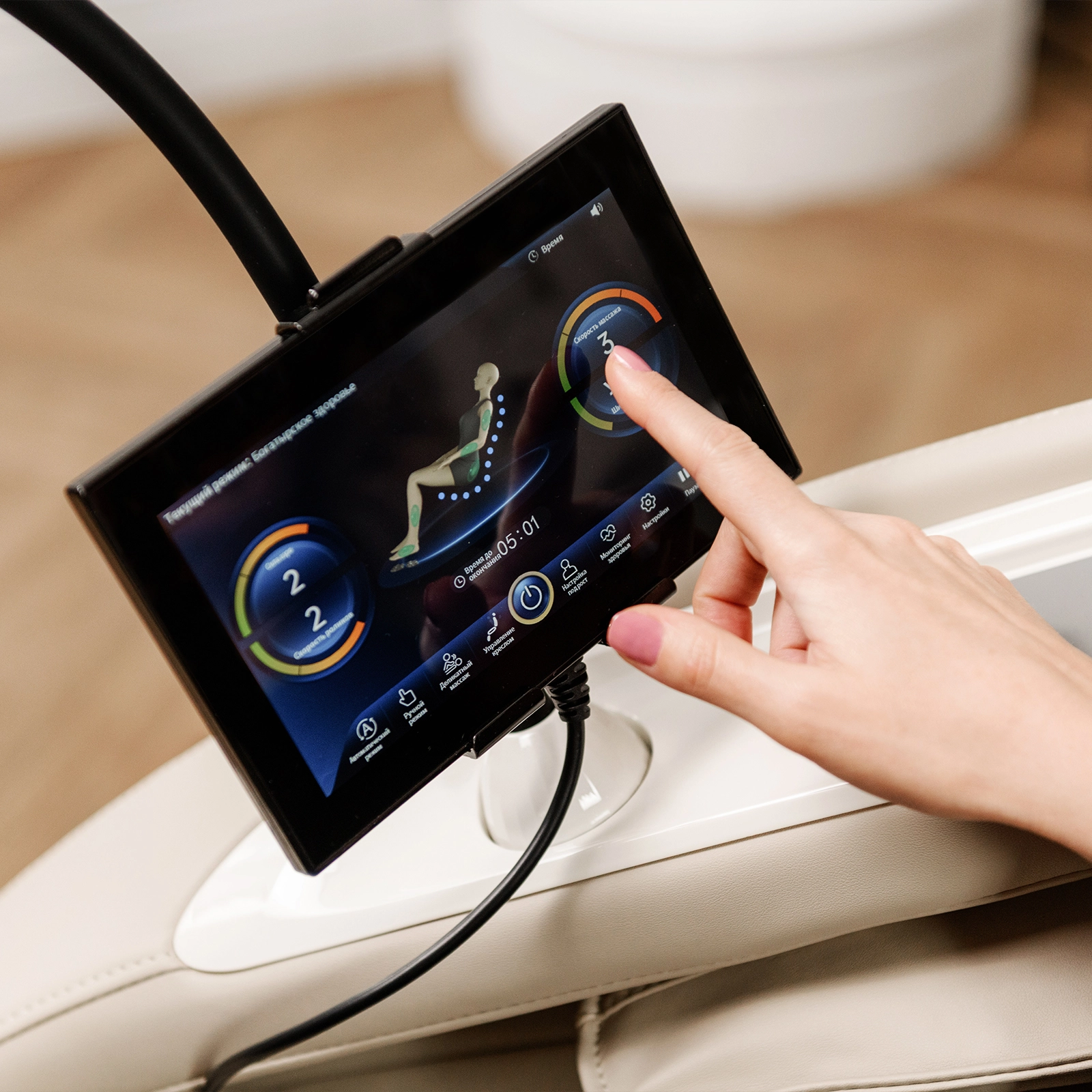 Встроенный биосенсор анализирует показатели организма и корректирует параметры работы. Управление осуществляется через интуитивно понятный планшет и кнопки быстрого доступа.