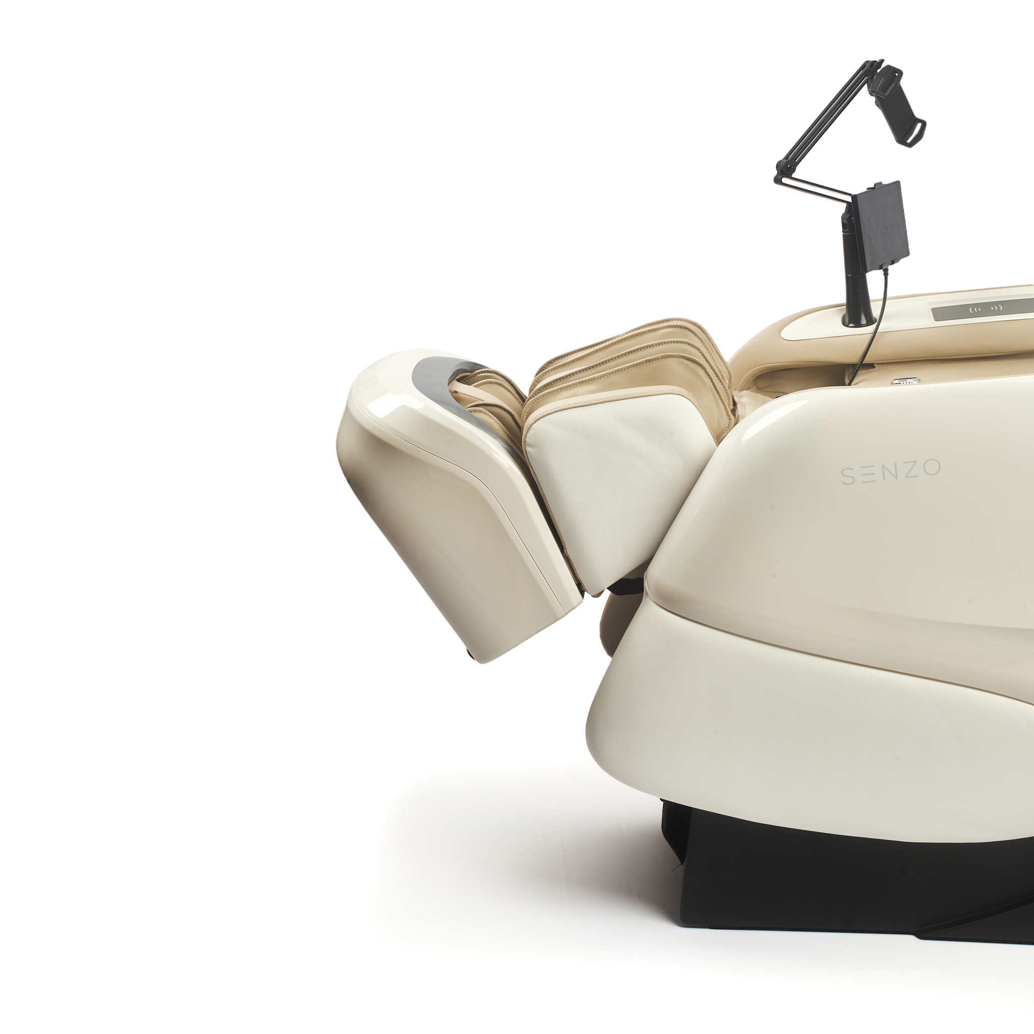 - В комплекте удобная подставка под телефон или планшет, которым можно управлять специальным джойстиком, встроенным в подлокотник, не отвлекаясь от массажа