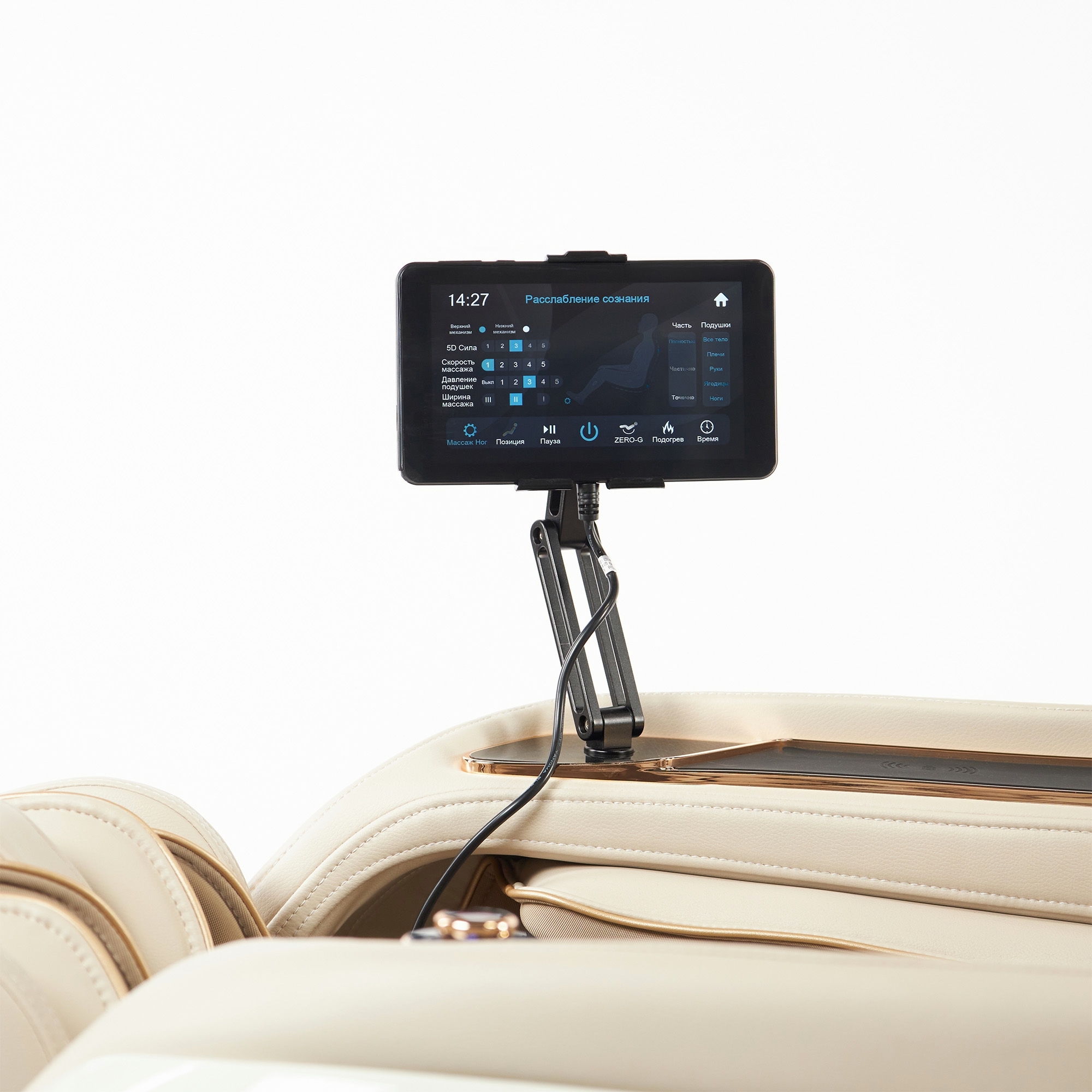 - 2 положения невесомости Zero-G (150° и 176°) для полного восстановления организма, снижения нагрузки на позвоночник и мышцы, эффективного массажа глубоких тканей, улучшения кровообращения и притока кислорода