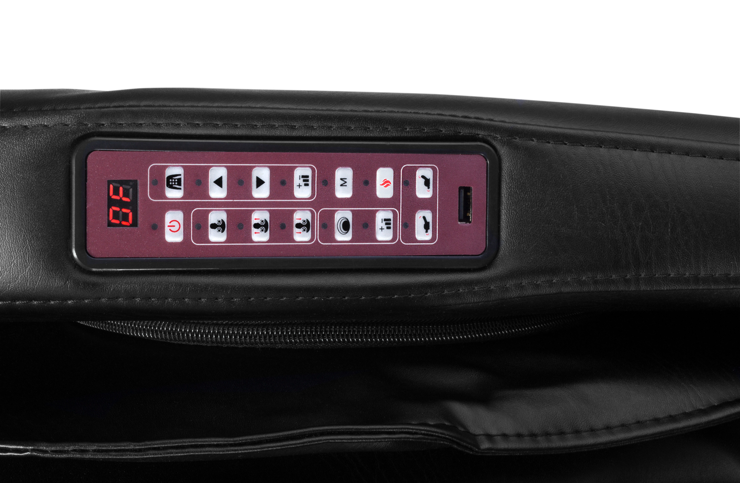 Кресло включает четыре управляемых массажных колеса, подвижную массажную группу в спинке кресла, включающие следующие типы массажа: