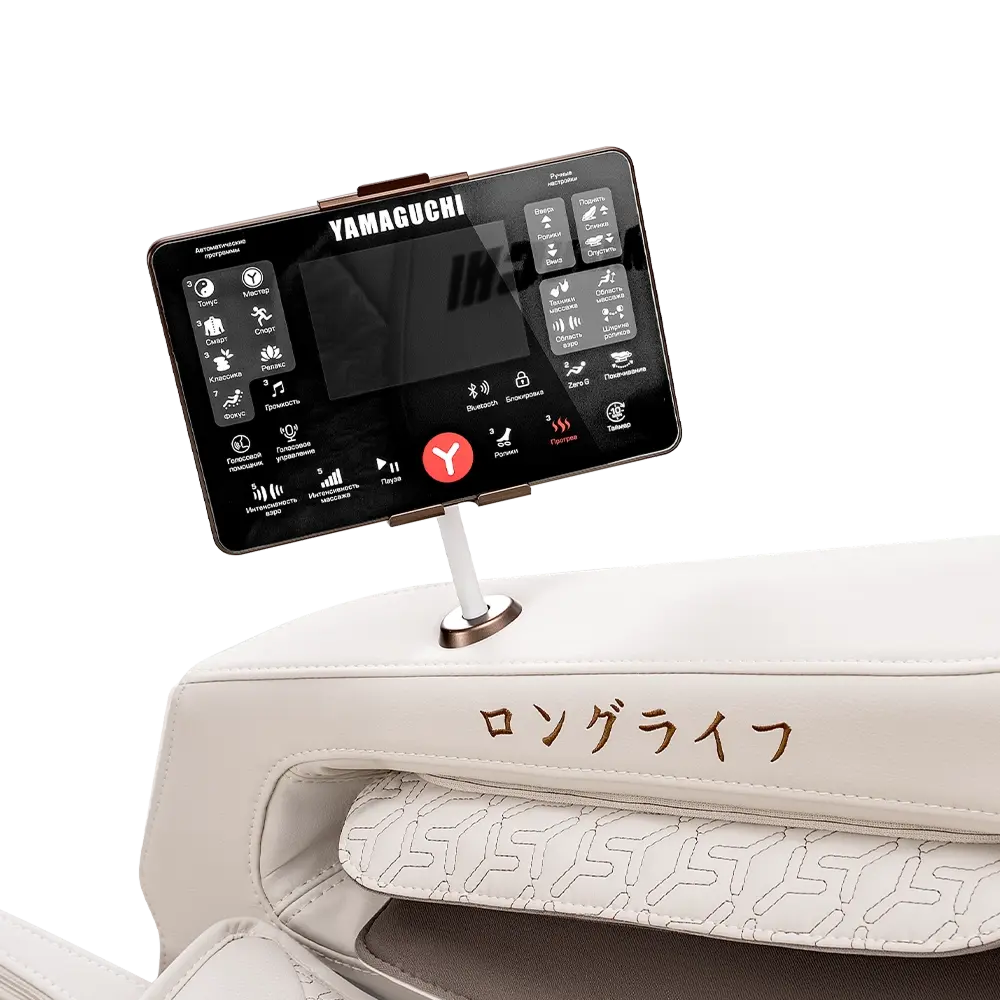 Пульт точно подстраивает работу кресла под предпочтения пользователя и учитывает каждую деталь, от мощности разминающих движений до идеального угла для отдыха ног.