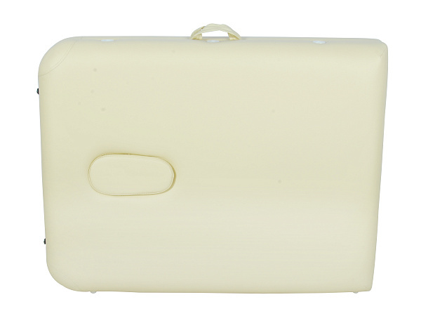 Стол, обладающий элегантным и лаконичным дизайном, складывается в чемодан для удобной транспортировки. Оборудован поднимающимся подголовником, снабженным лицевым вырезом, продублированным в изголовье, и подвесом для рук.