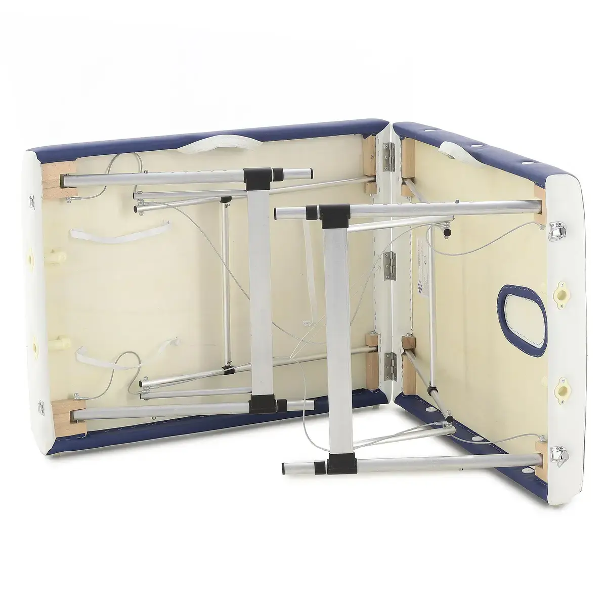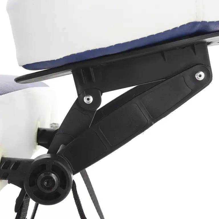 Эта модель массажного стола регулируется по высоте, поэтому её можно адаптировать к любому росту специалиста.