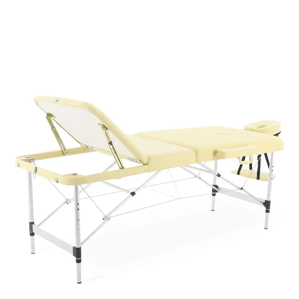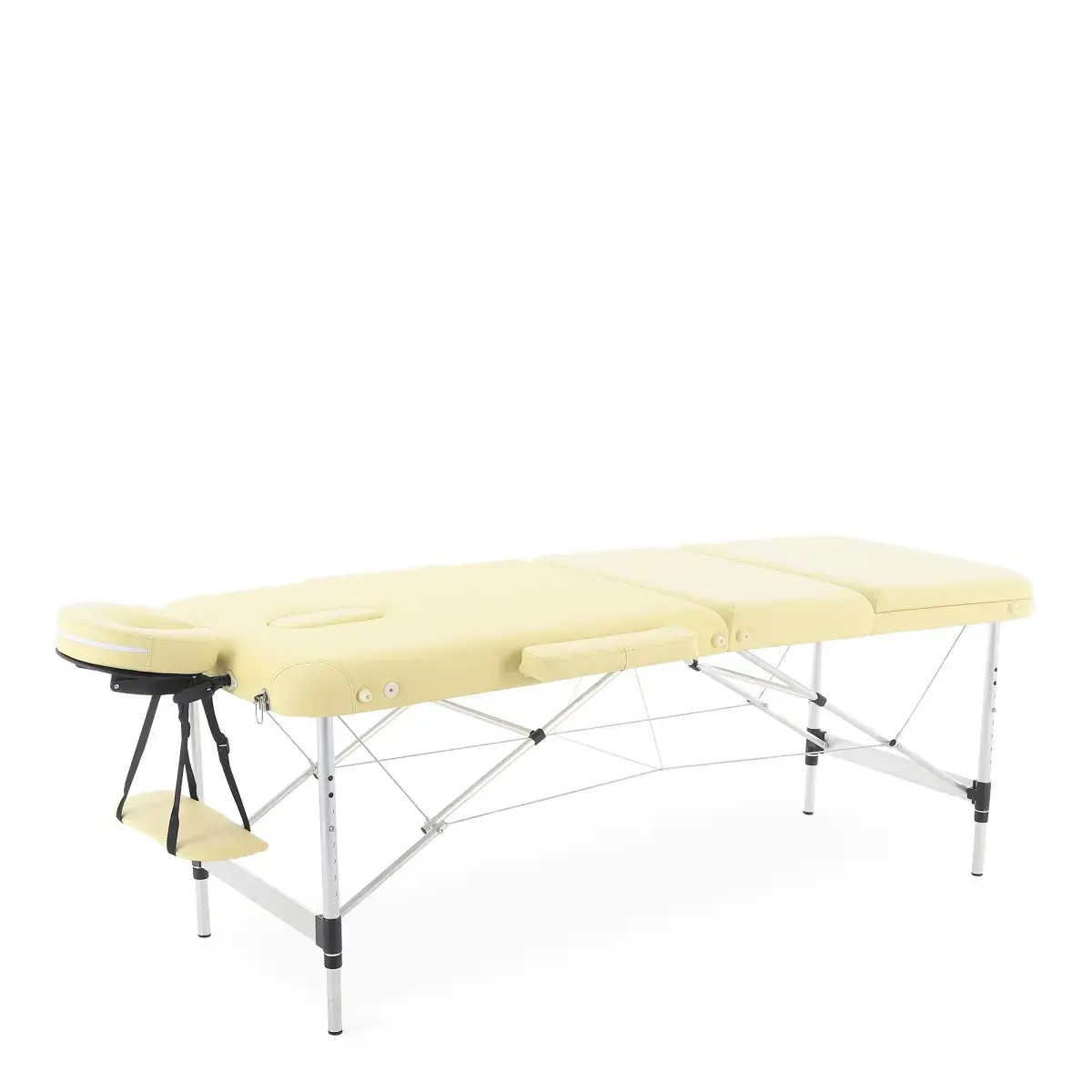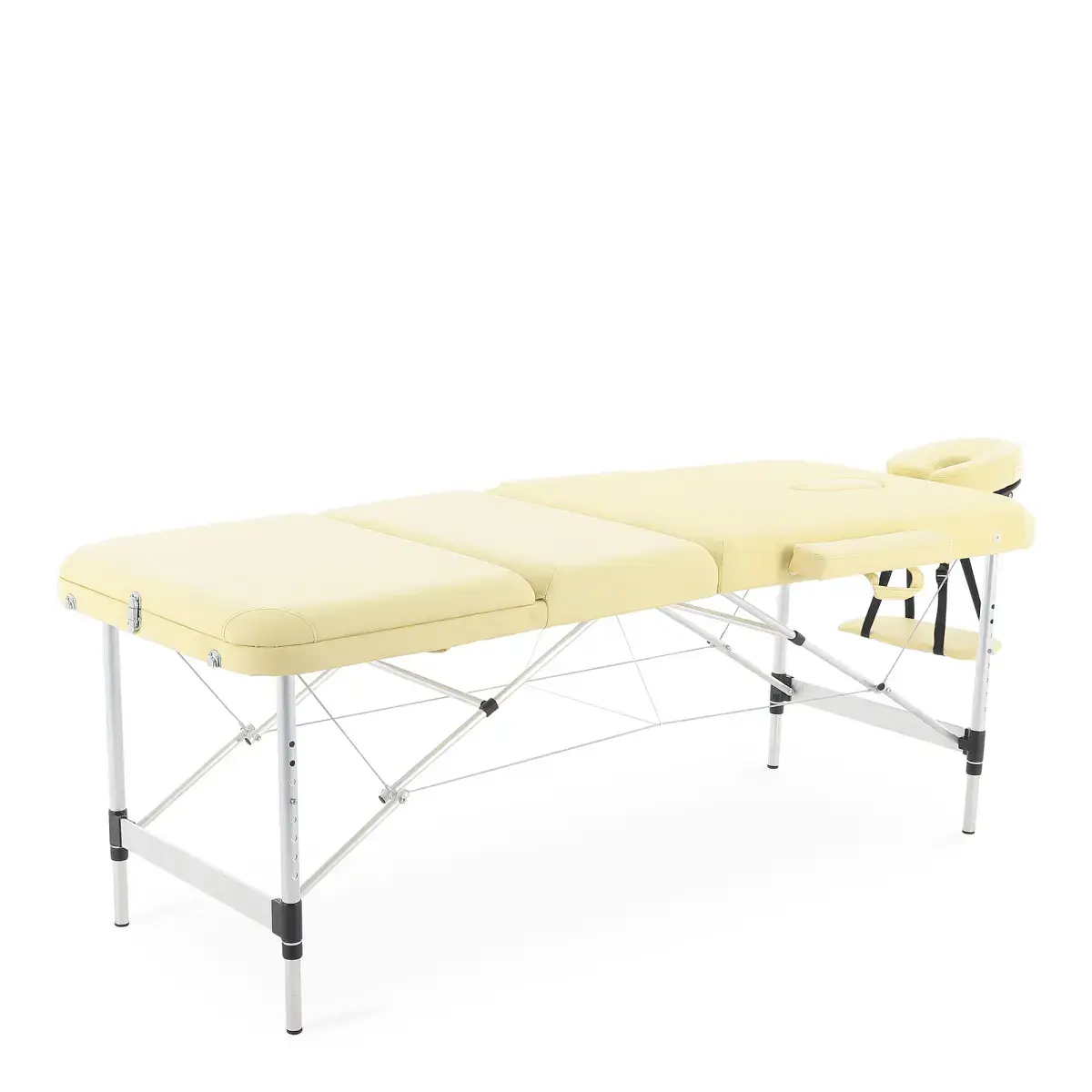 Массажный стол обладает лёгким и прочным алюминиевым каркасом с телескопической регулировкой высоты ножных опор, позволяющими устанавливать стол на удобной для пациента и врача высоте.