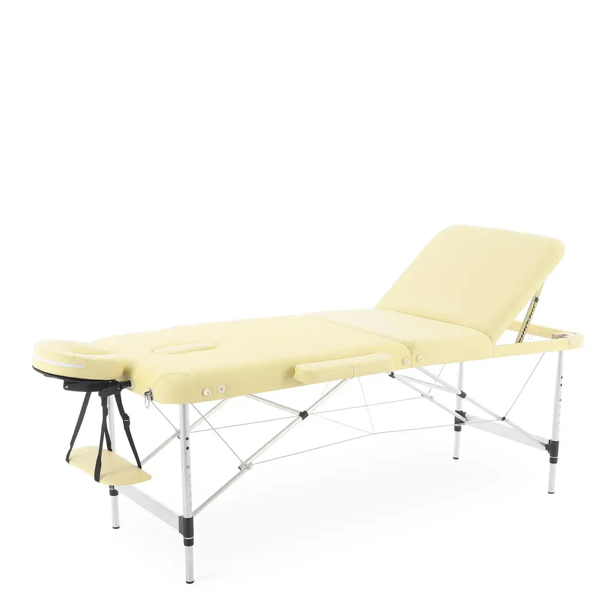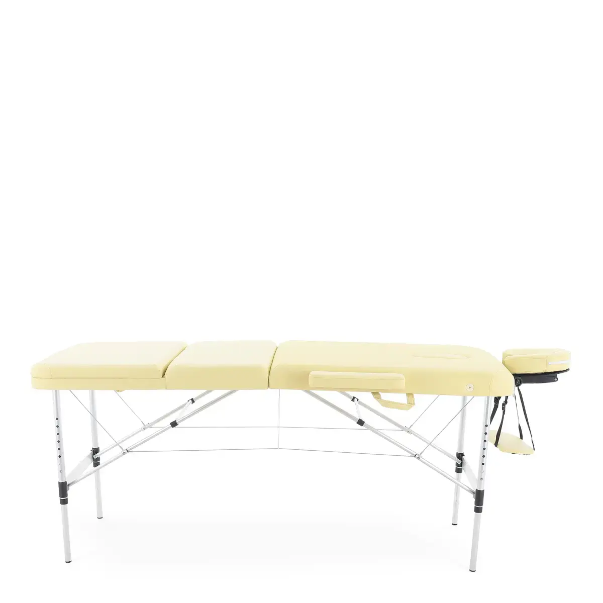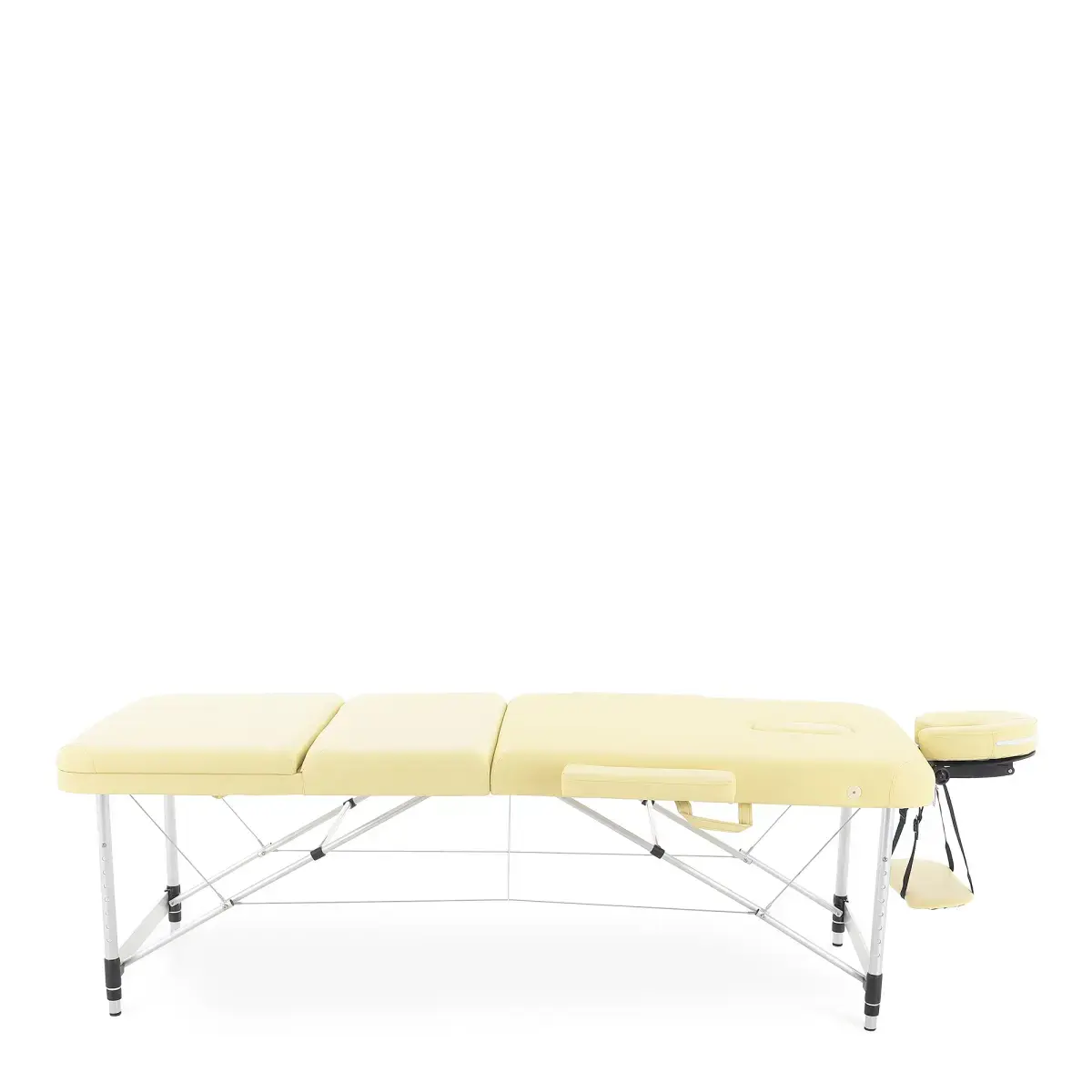 Массажный стол обладает лёгким и прочным алюминиевым каркасом с телескопической регулировкой высоты ножных опор, позволяющими устанавливать стол на удобной для пациента и врача высоте.
