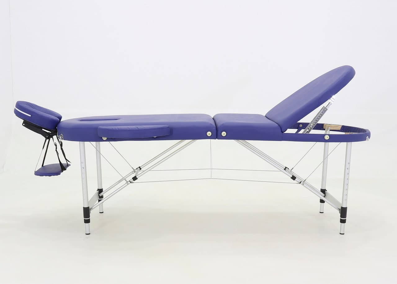 Массажный стол оборудован поднимающейся ножной частью, для проведения лимфодренажных процедур. Регулируемые "телескопические" ножные опоры позволяют установить стол на удобную для пациента и врача высоту.