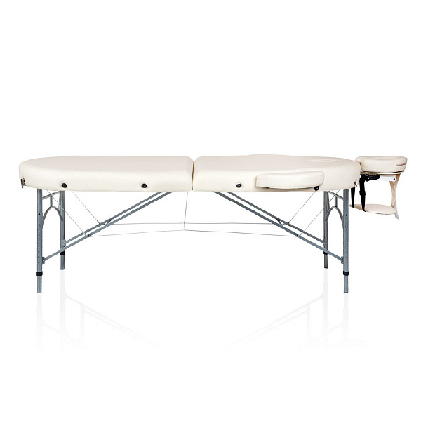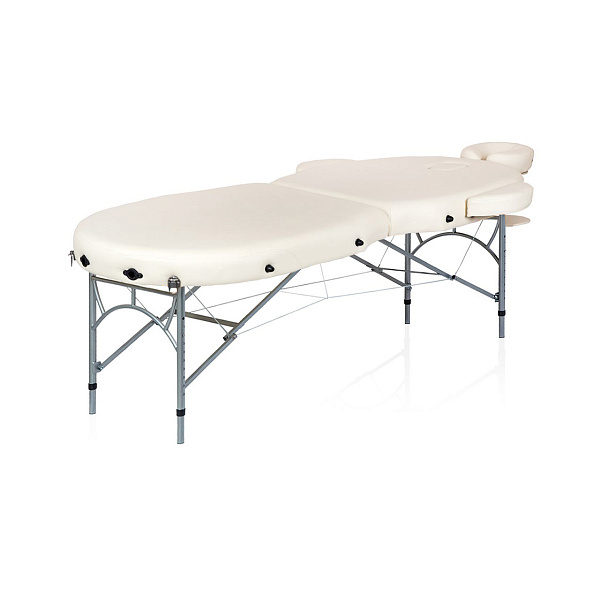 Складной массажный стол Mizomed Premium Oval 2 AL имеет приятную на ощупь «Skin-touch» обивку с мягким наполнителем толщиной 6 см. Однако, главная особенность этого стола – его особо легкая поддерживающая конструкция и регулируемые по высоте ножки, сделанные из алюминия. Такое оборудование идеально подойдет для тех мастеров, которым приходится часто менять свое место работы. Благодаря облегченной конструкции, кушетку достаточно просто перемещать в необходимое место и даже возить с собой.