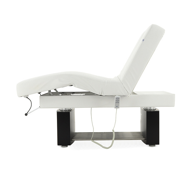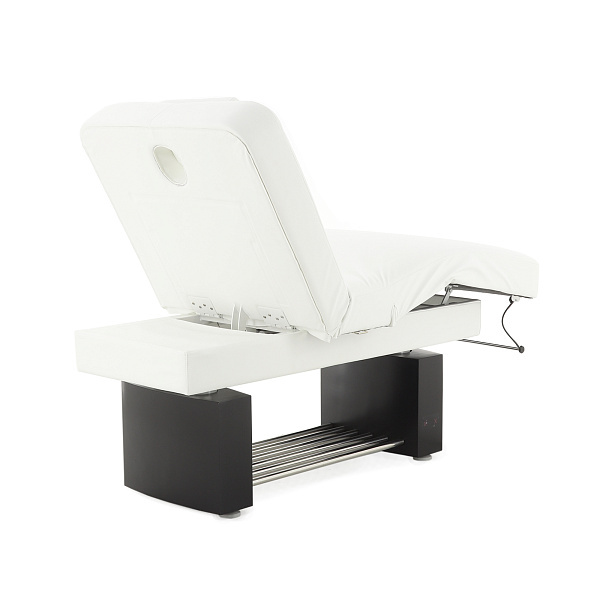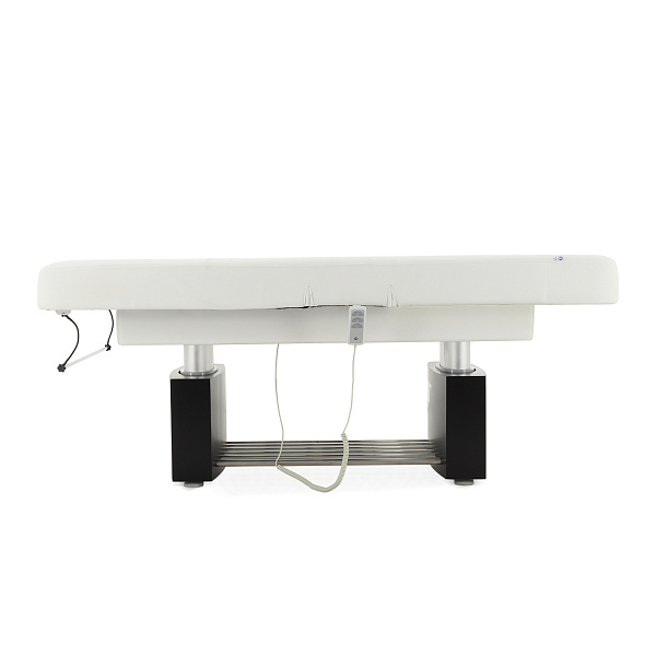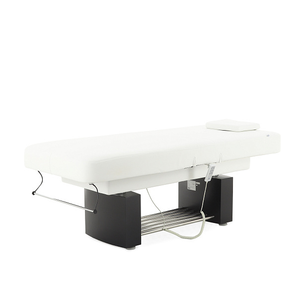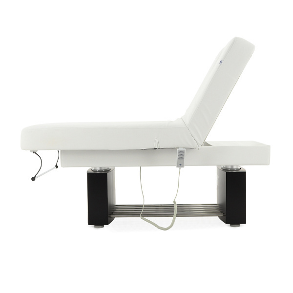 Ложе выполнено из упругого и мягкого пенополиуретана толщиной 14 см, материал прекрасно адаптируется к форме тела клиента. Поверхность стола обита экокожей винил-люкс – универсальным покрытием, которое легко моется и очищается от загрязнений.
