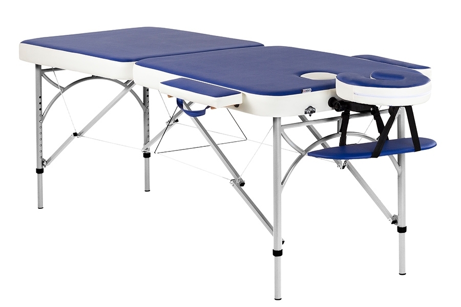 Для изготовления столешницы используются износостойкие материалы и ткань для обивки 2-х цветов: белого и синего. Доказано, что эти 2 цвета не только способствуют быстрому и максимальному расслаблению, но и усиливают массажный эффект. Это цветовое сочетание превосходно вписывается в любое помещение и гармонирует с любыми дизайнерскими решениями.