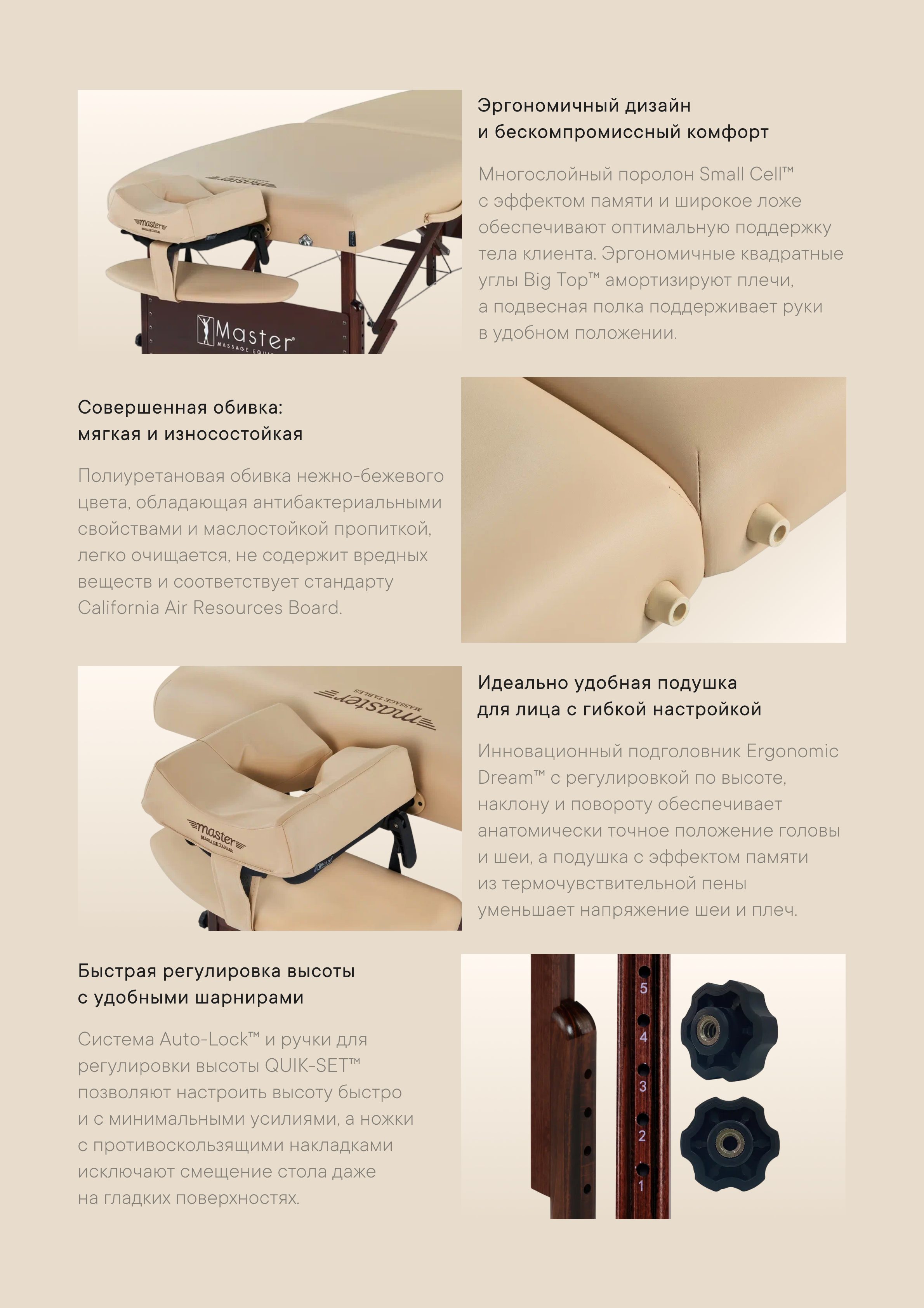 Прямоугольные углы деревянной рамы стола, как показали анатомические исследования, способствуют лучшему расслаблению плечевой зоны по сравнению с закруглёнными моделями. Это создаёт более глубокий терапевтический эффект и высокий уровень комфорта для клиентов.