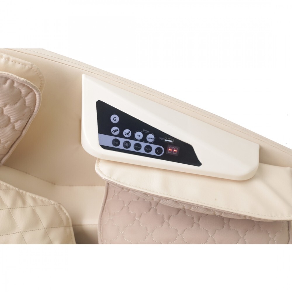 Компрессионные подушки удерживают плечи и ноги, а кресло раскладывается и вытягивает позвоночник.