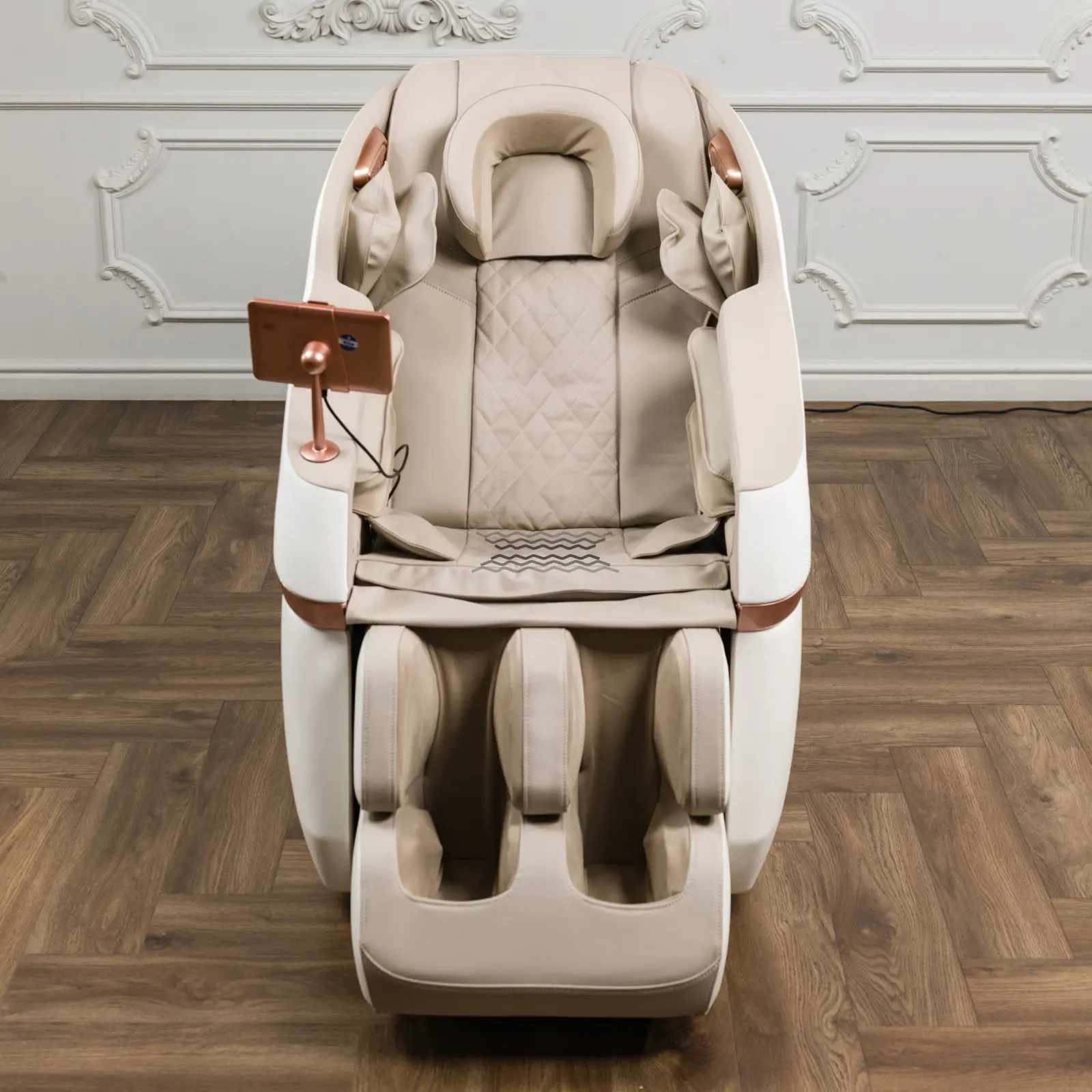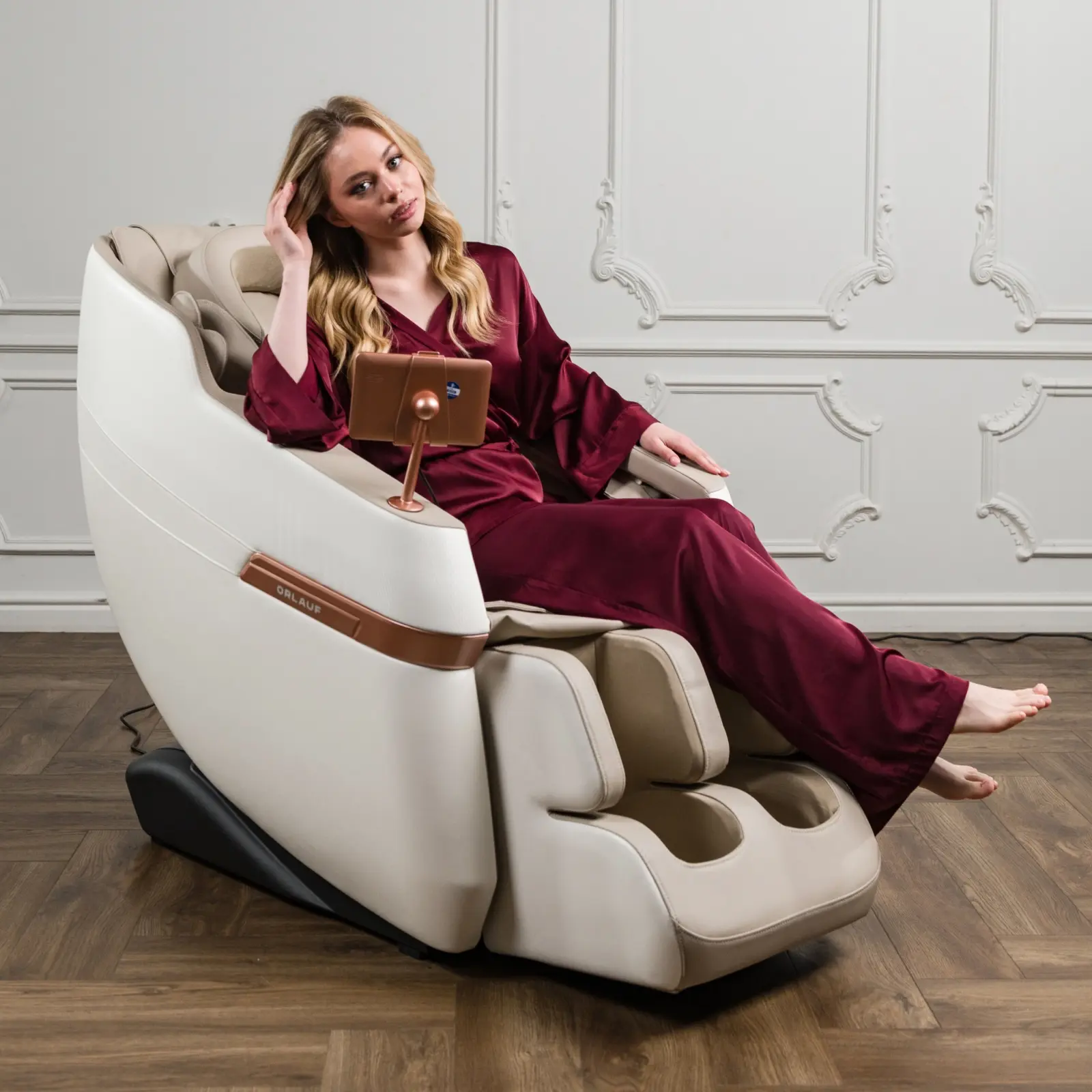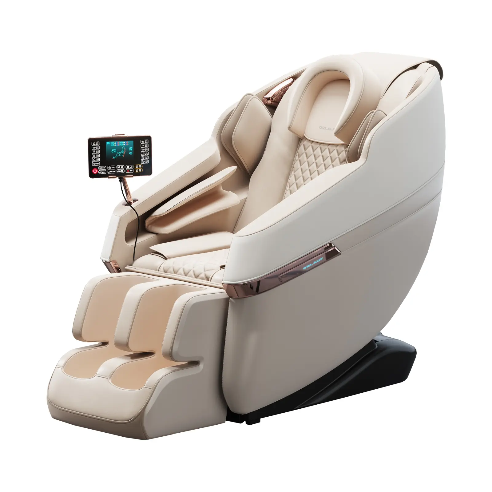 Orlauf Chase оснащено 22 роликами в спине, которые обеспечивают глубокий и точечный массаж, и 24 роликами для ног с акупунктурными точками. Такая конструкция помогает улучшить кровообращение и снять мышечное напряжение. Воздушно-компрессионный массаж осуществляется с помощью 20 подушек, которые воздействуют на разные участки тела: от шеи и плеч до ступней. Это способствует расслаблению и лимфодренажу.