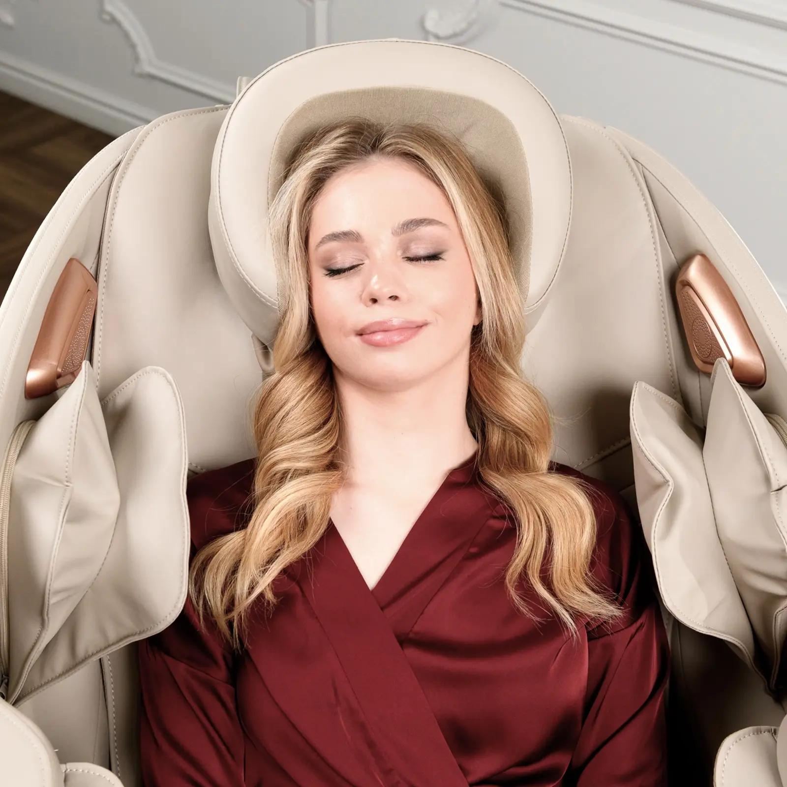 Встроенные Bluetooth-колонки создают приятную атмосферу во время массажа, а таймер позволяет выбрать длительность сеанса от 15 до 30 минут. Кресло рассчитано на пользователей весом до 150 кг, а транспортировочные ролики упрощают его перемещение.