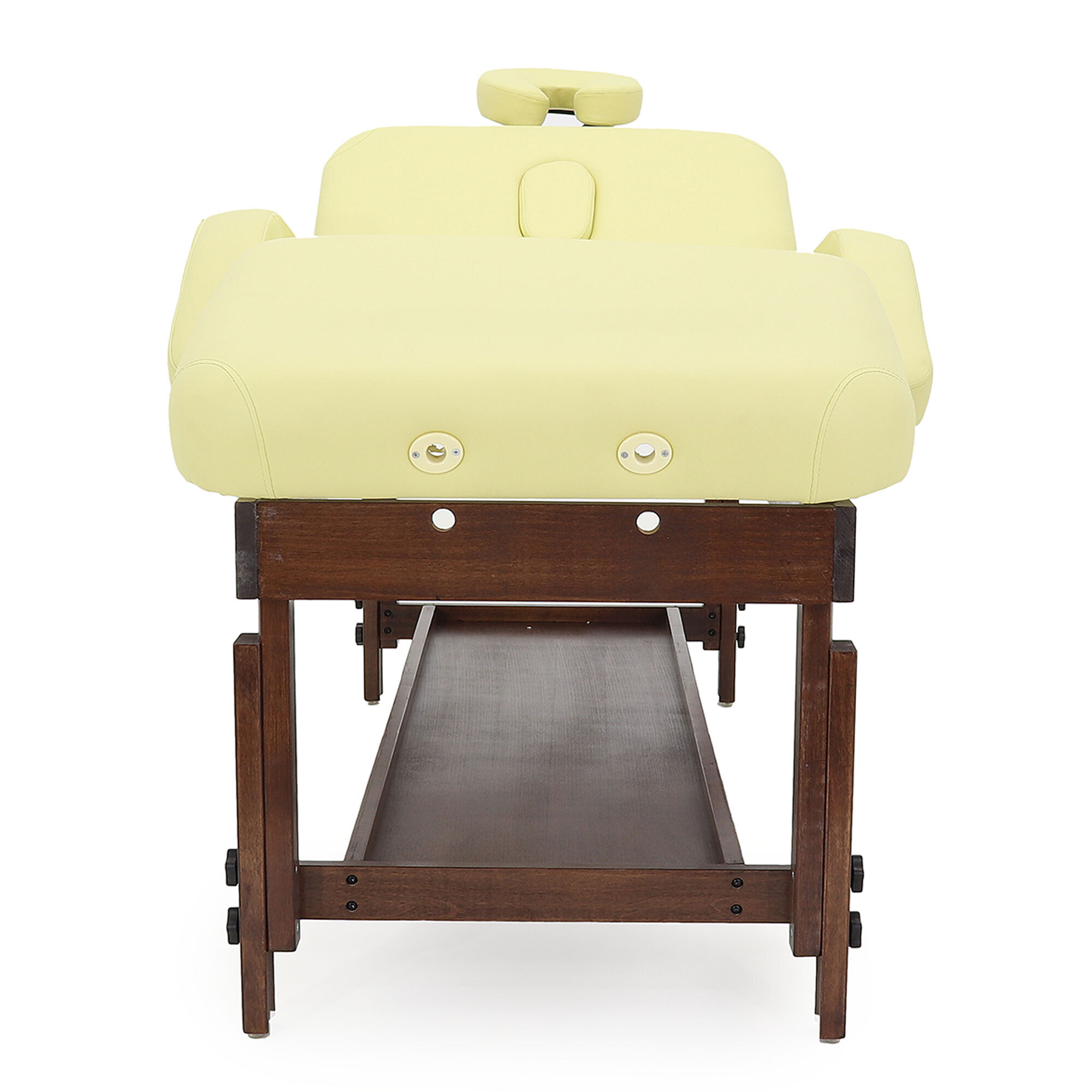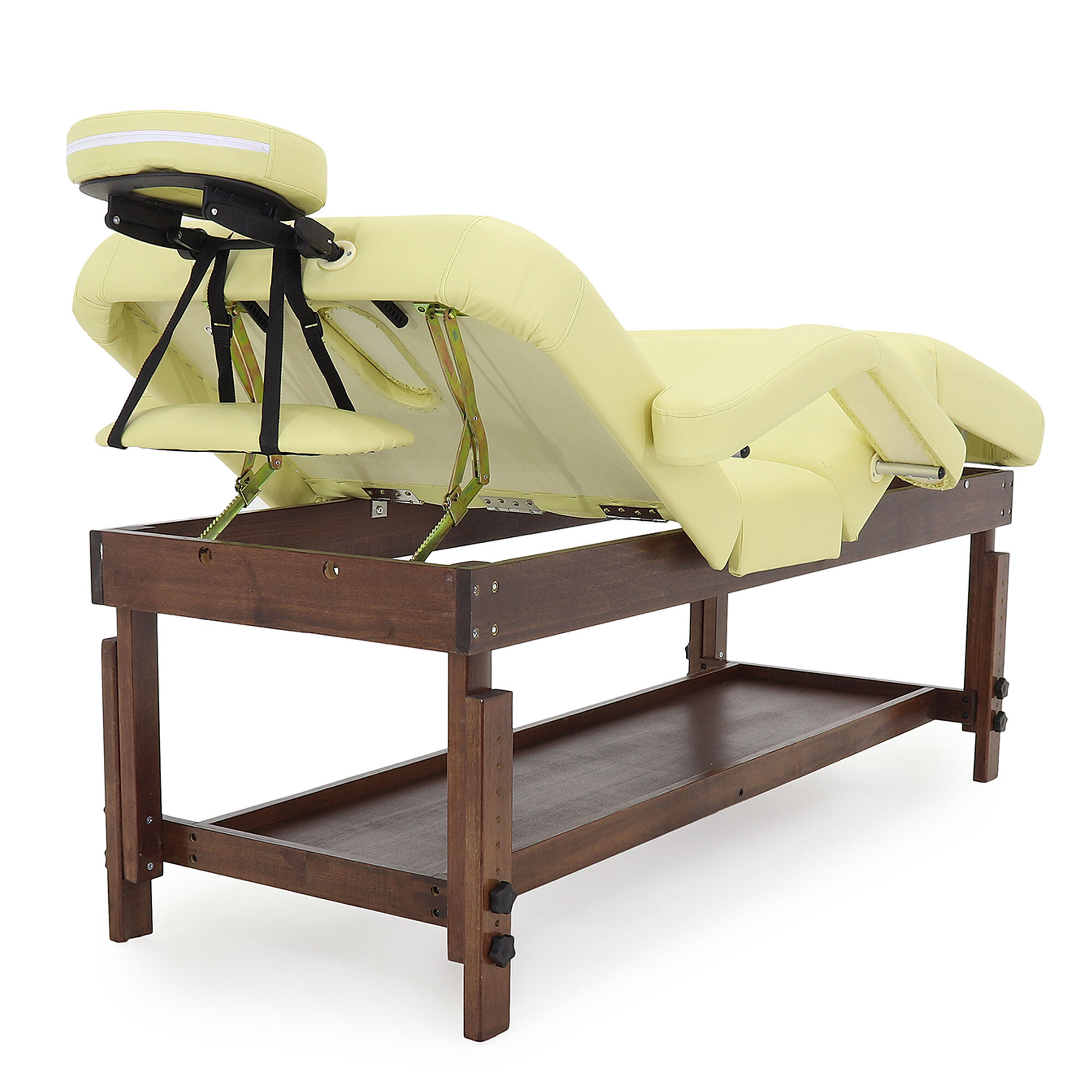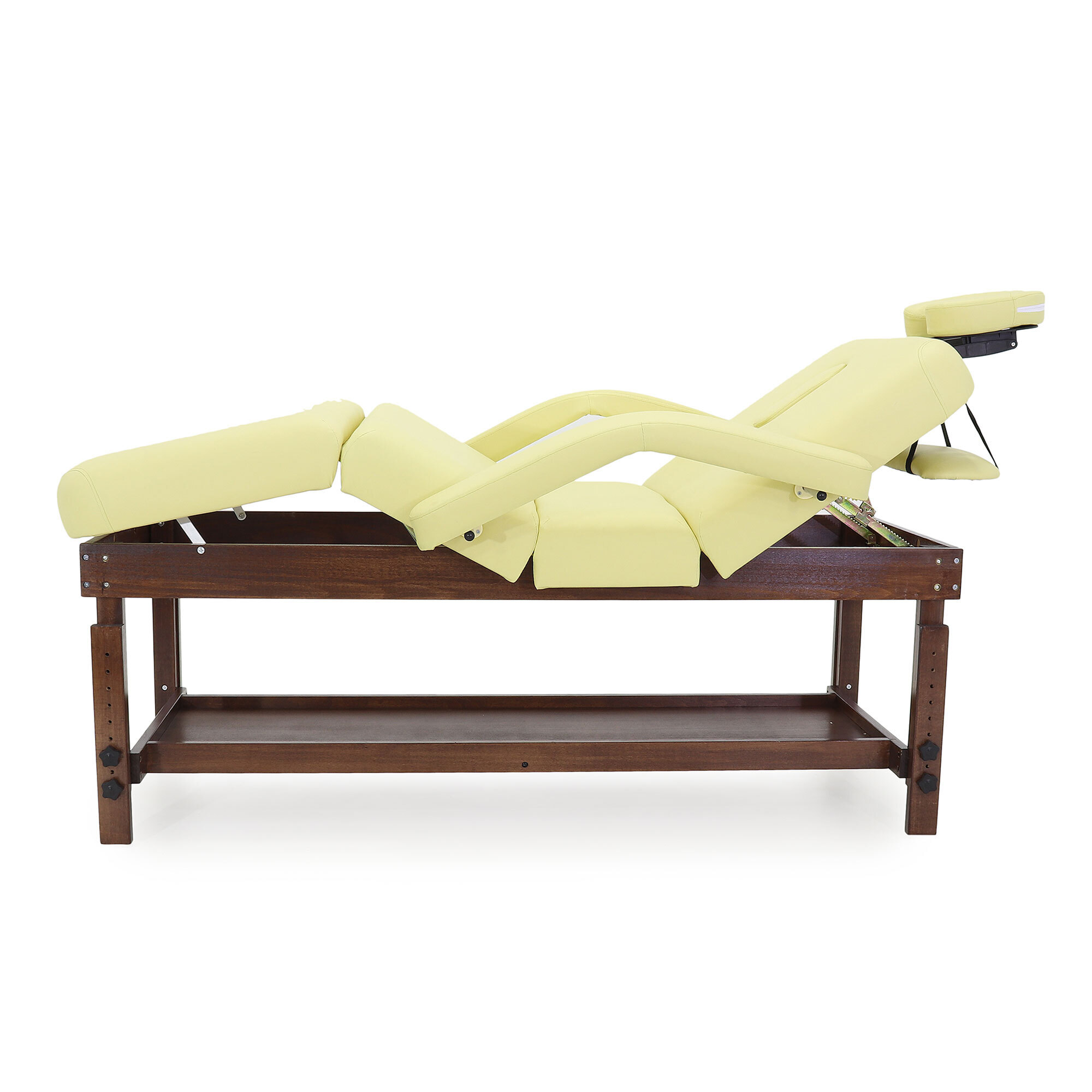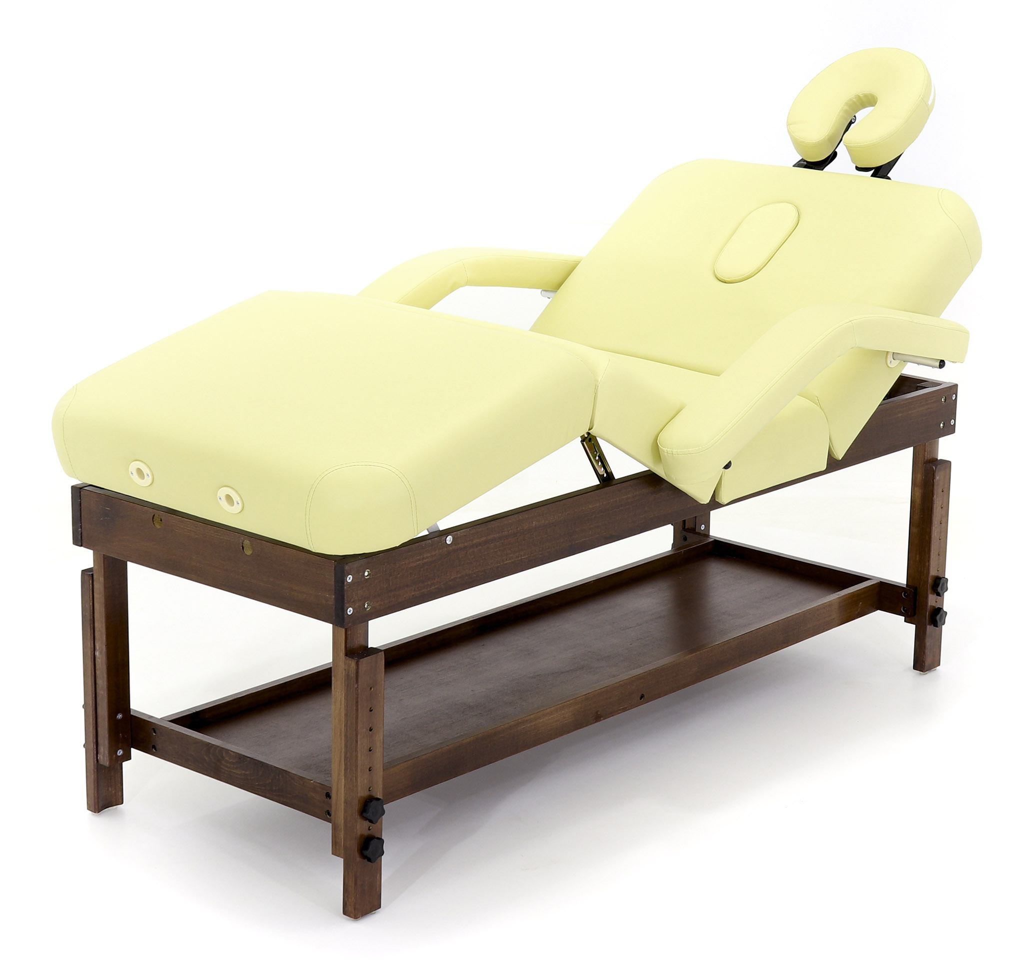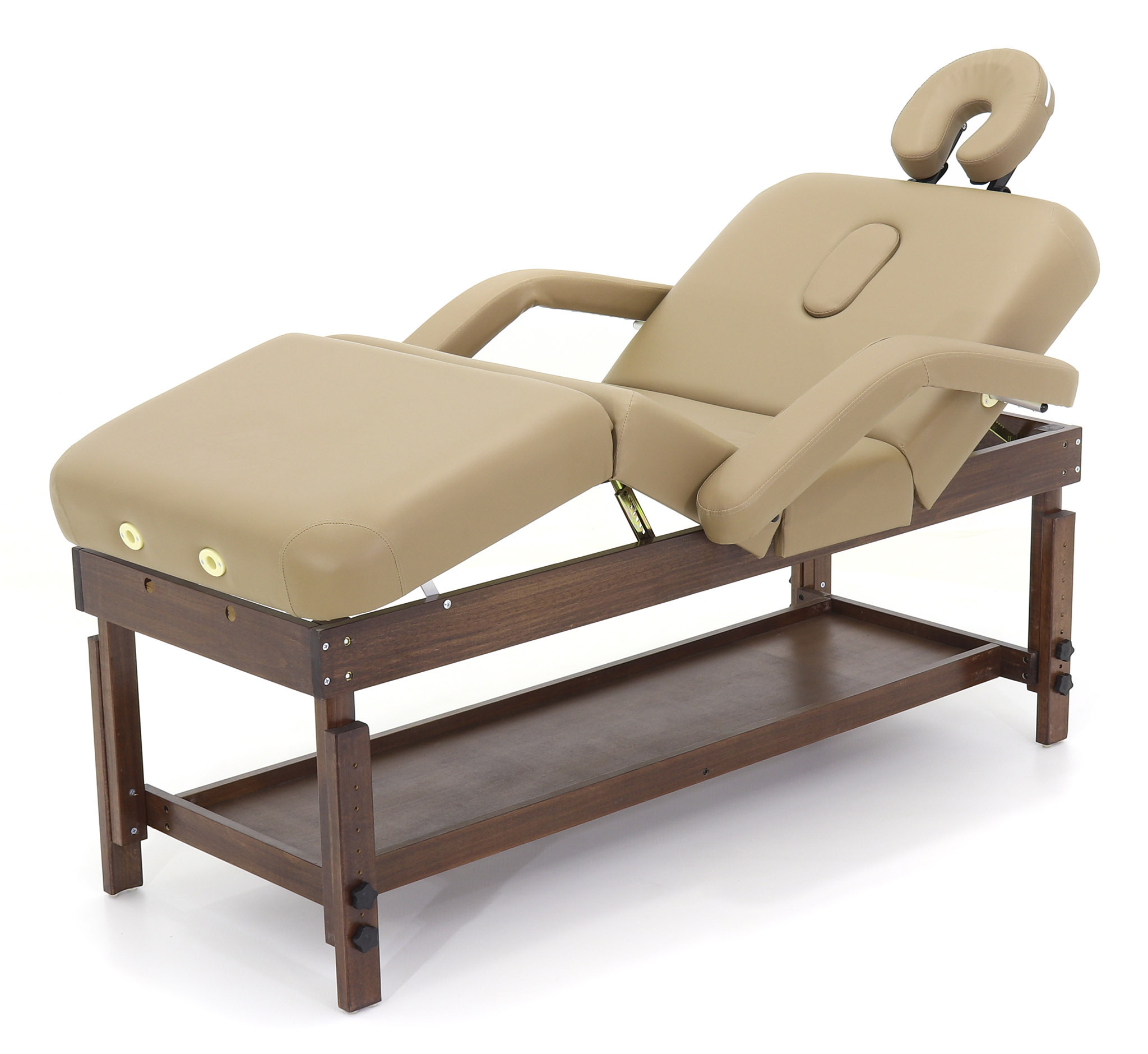 Также этот массажный стол оснащен функцией регулировки высоты, что позволяет мастеру самому определять, насколько нужно поднять или опустить ложе, чтобы снизить нагрузку на свои мышцы при выполнении процедур.