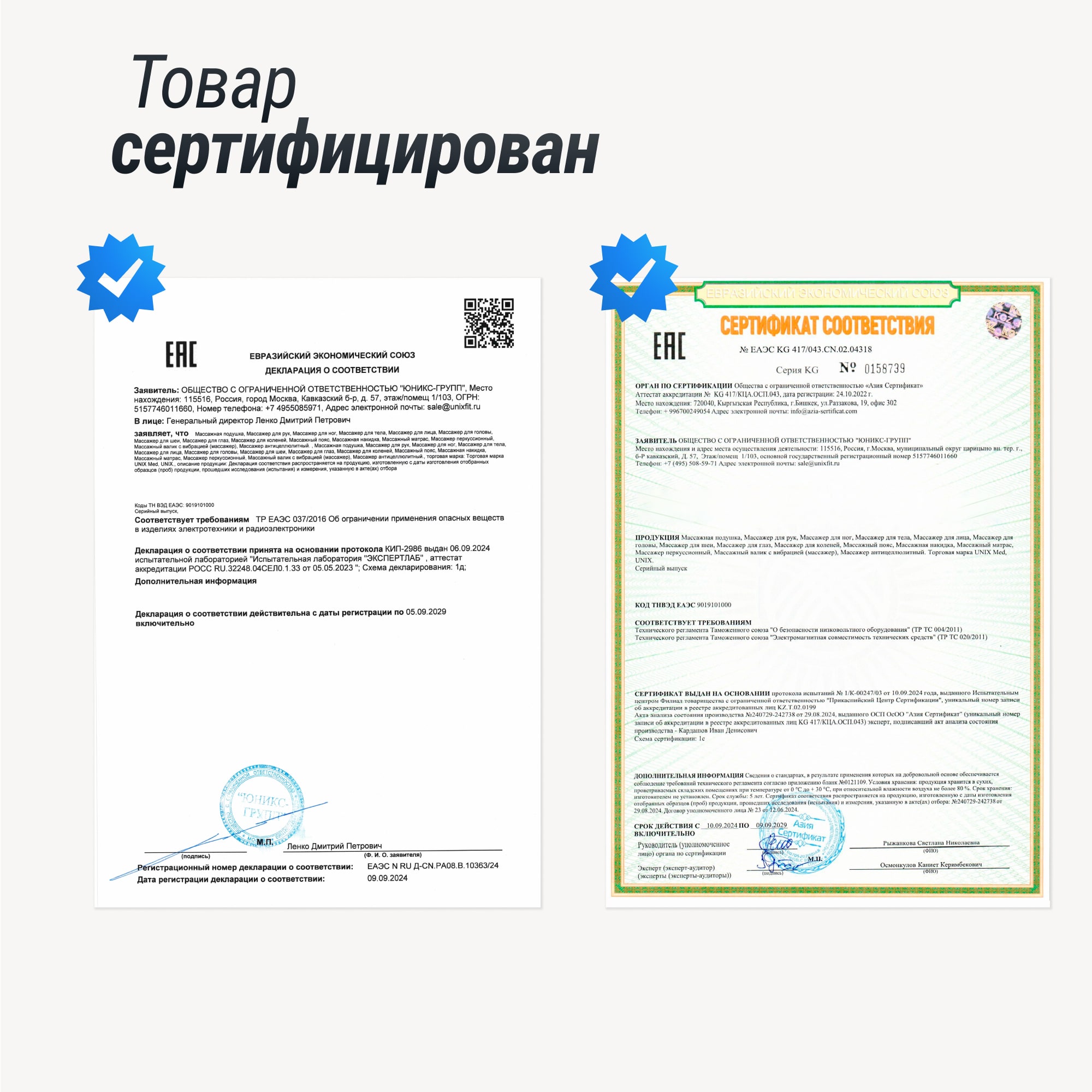 - Встроенные динамики позволят во время массажа слушать любимую музыку через Bluetooth со звуком Hi-Fi. Кресло позволяет синхронизировать вашу любимую музыку с массажным механизмом. Расслабьтесь под свою любимую музыку и получайте удовольствие с массажным креслом UNIX Med. Встроенная функция Bluetooth позволяет подключать ваше устройство и наслаждаться любимыми мелодиями или расслабляющими звуками природы во время массажа спины, ШВЗ (шейно-воротниковой зоны) или массажа ног. Создайте дома идеальную атмосферу для отдыха и восстановления сил!