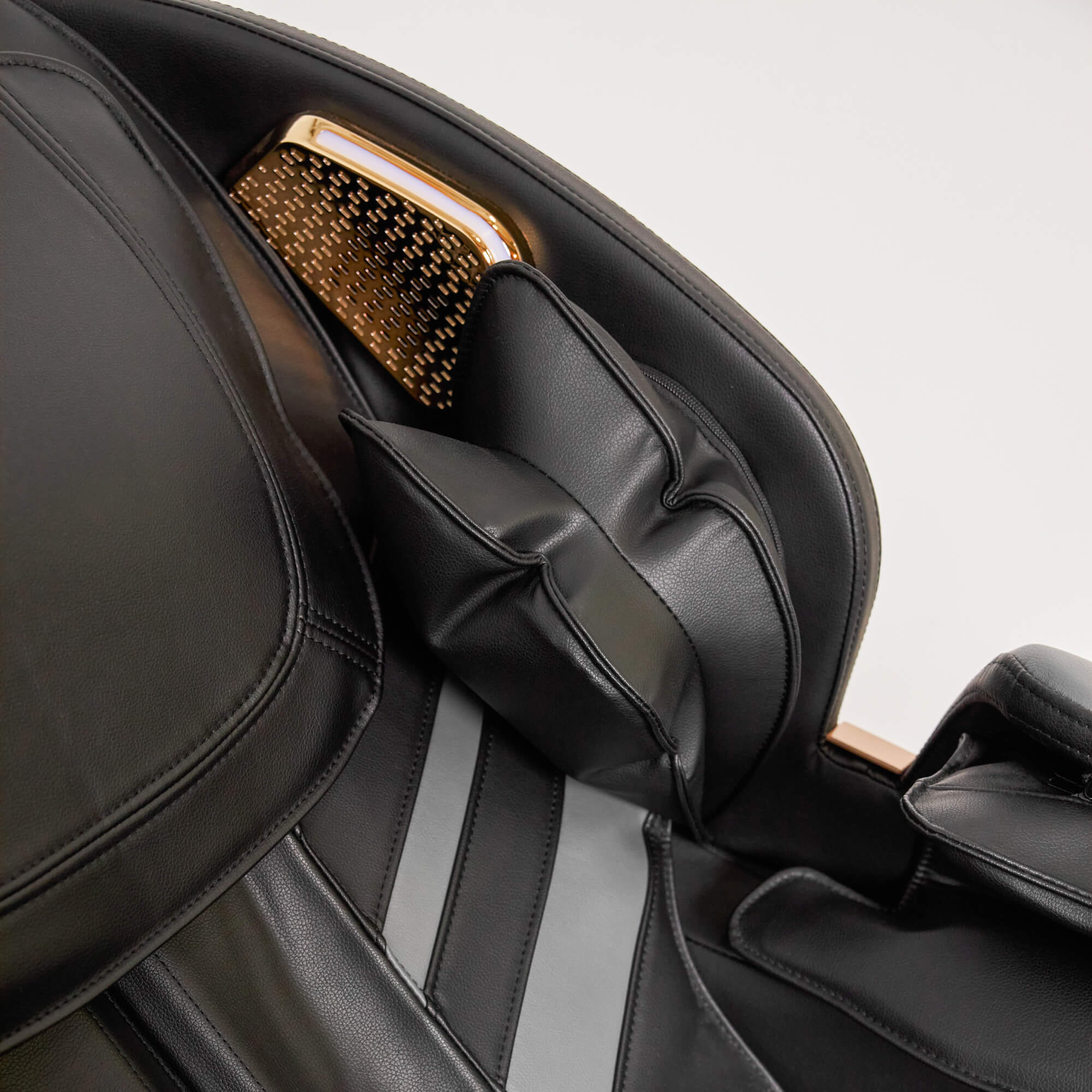 - Аэромассаж. Воздушно-компрессионный массаж со встроенными воздушными подушками расположенными по всему креслу оказывают воздействие на все тело человека. Воздушные подушки обеспечивают возможность выполнения легкого расслабляющего массажа, в результате нормализуется кровообращение и артериальное давление, убирается отечность, такой массаж благотворно влияет на лимфатическую систему, сердечно-сосудистую систему, на мышечные ткани. Чередование воздушной компрессии и обычного массажа благотворно сказывается на всех процессах в организме человека. Воздушно-компрессионный массаж рекомендован для коррекции фигуры, восстановления упругости кожи и ее эластичности.