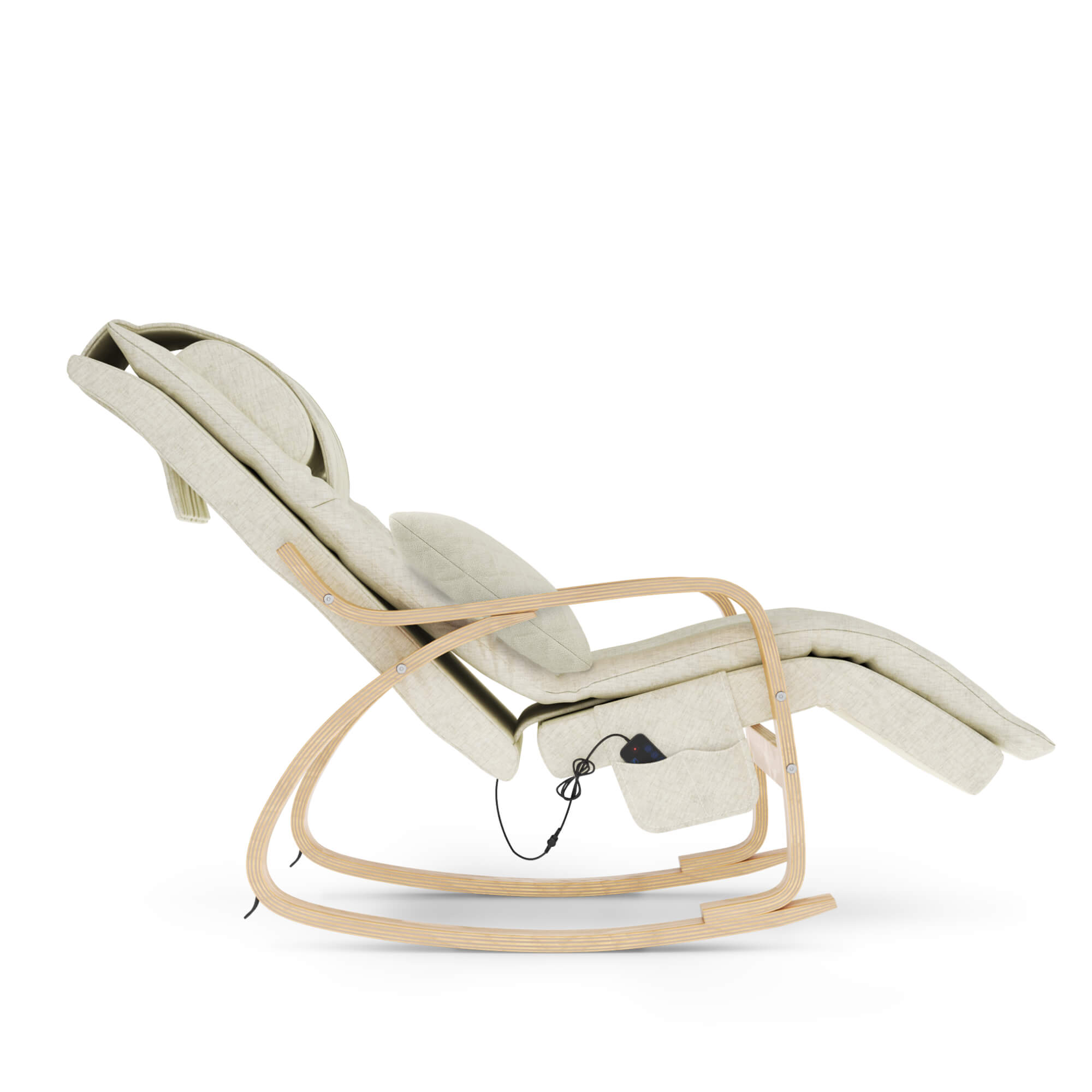 Одной из главных особенностей кресла для массажа шеи и спины является интегрированный роликовый массажер с 22 роликами, который включает в себя автоматический режим и вибрационный. Массажное кресло-качалка выполняет роликовый 2D-массаж спины и шейно-плечевой зоны, а также расслабляющий вибромассаж области ягодиц. Вы можете выбрать интенсивность по своему желанию – низкий, средний или высокий уровень вибрационного воздействия. Он точно имитирует движения профессионального массажиста, прорабатывая каждую мышцу вашего тела. Вы можете выбрать зону воздействия, например массаж всей спины, нижней части спины или шеи, а также интенсивность воздействия и направление вращения роликов.