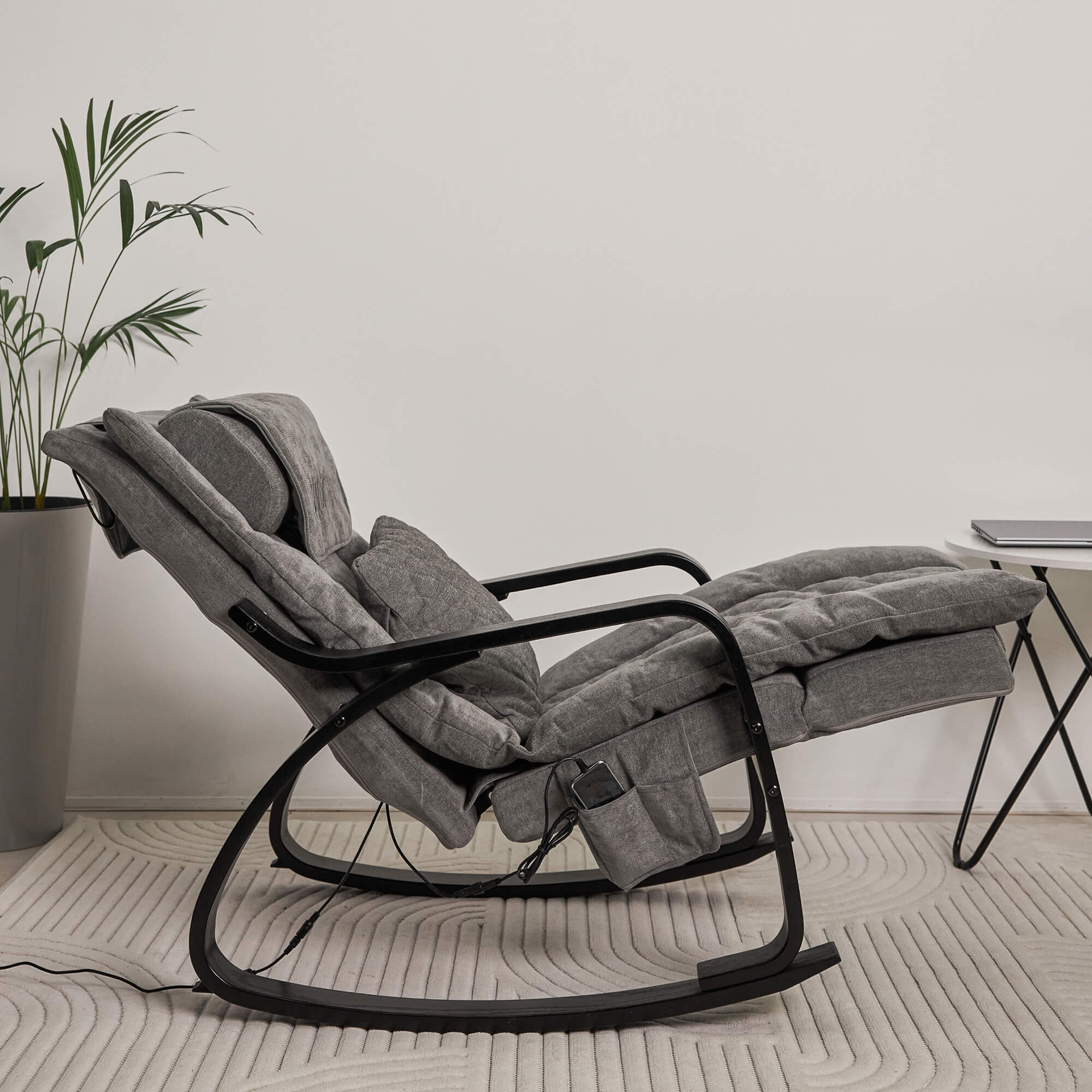 Одной из главных особенностей кресла для массажа шеи и спины является интегрированный роликовый массажер с 22 роликами, который включает в себя автоматический режим и вибрационный. Массажное кресло-качалка выполняет роликовый 2D-массаж спины и шейно-плечевой зоны, а также расслабляющий вибромассаж области ягодиц. Вы можете выбрать интенсивность по своему желанию – низкий, средний или высокий уровень вибрационного воздействия. Он точно имитирует движения профессионального массажиста, прорабатывая каждую мышцу вашего тела. Вы можете выбрать зону воздействия, например массаж всей спины, нижней части спины или шеи, а также интенсивность воздействия и направление вращения роликов.