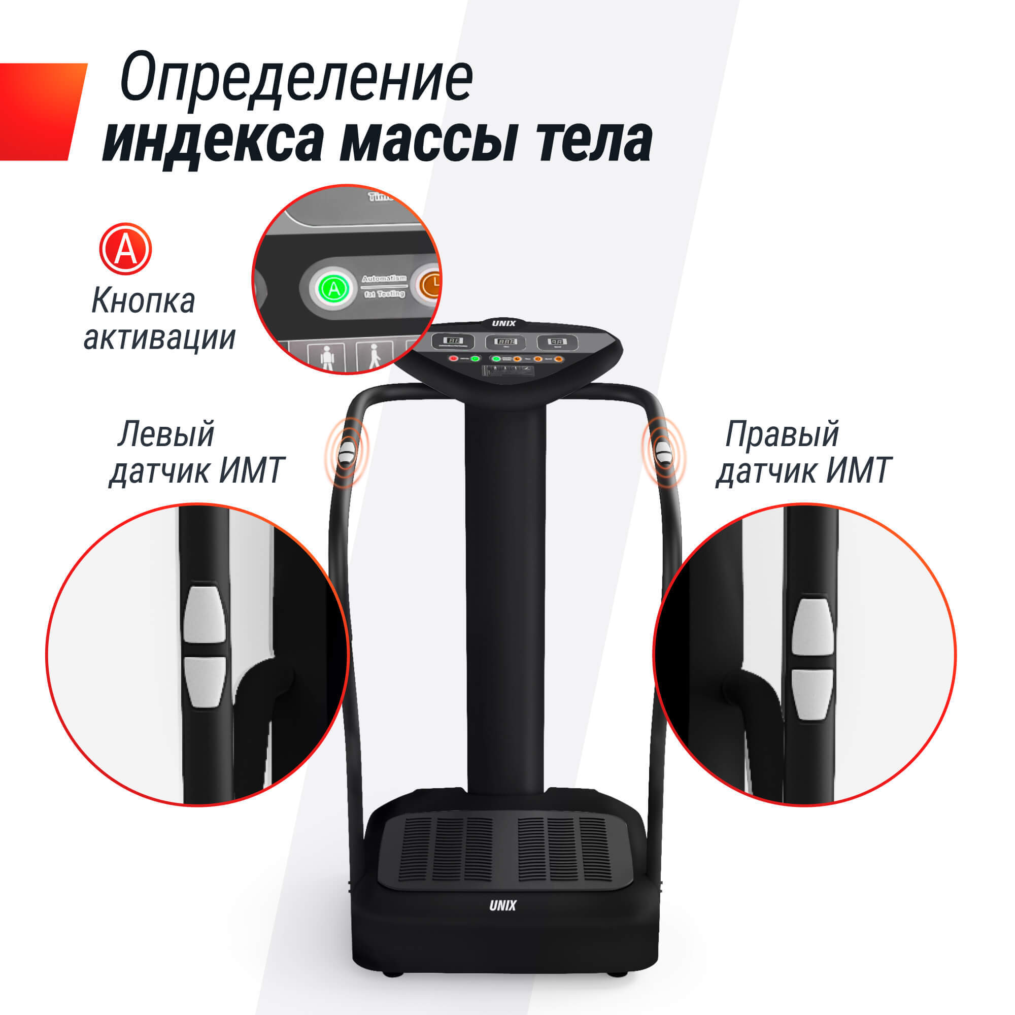 Датчики ИМТ справа и слева на поручнях. Для его активации необходимо нажать 4 раза на кнопку "Авто" до "1", далее через кнопку "таймер" ввести пол "1"- женский; "2" - мужской, цифры меняются при помощи кнопок "+" и "-", далее нажимаем "таймер", необходимо ввести значение "возраст", далее "таймер" - "рост", далее "таймер" - "вес", завершить показания кнопкой "таймер" и положить руки на рукоятки и на экране отобразится и ИМТ.