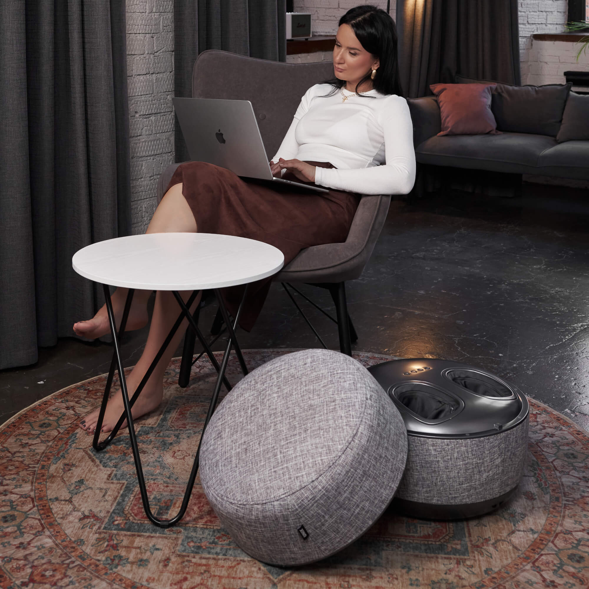 Интуитивно понятная панель управления позволит вам легко настроить все параметры. Всего одно нажатие кнопки — и вы погружаетесь в мир расслабления. Компактные размеры устройства позволяют легко разместить массажер пуфик в любом уголке вашего дома, а стильный дизайн гармонично впишется в любой интерьер.