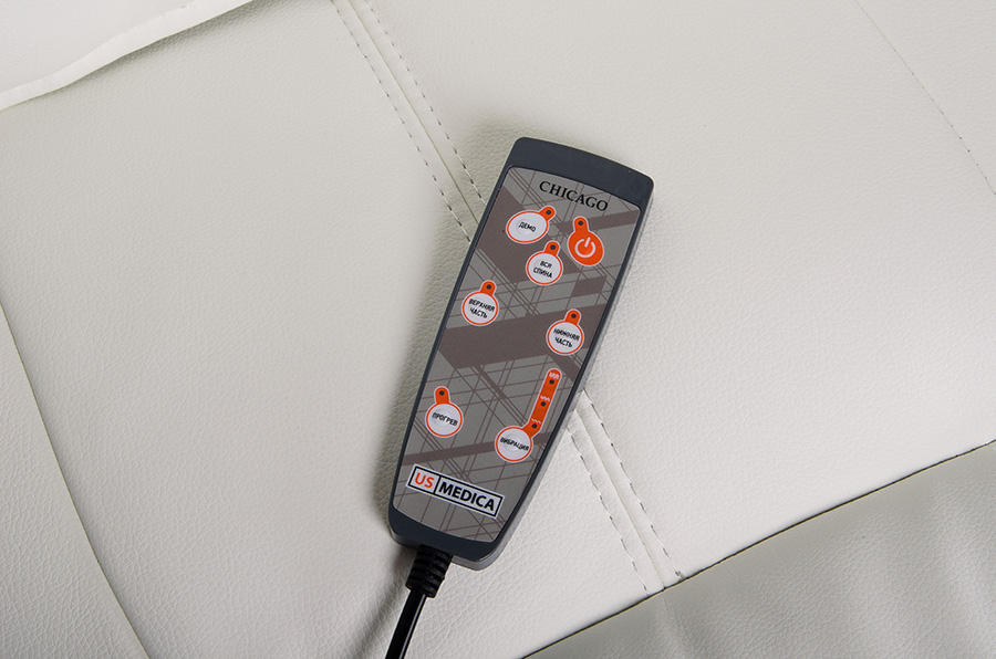 Эффективность массажа кресла US МЕDICA Chicago повышается оснащением модели функцией инфракрасного прогрева поясничной зоны.