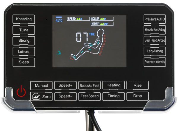 - автоматический режим, массаж верхней части тела, массаж нижней части тела, массаж ног, Нулевая гравитация, прогрев