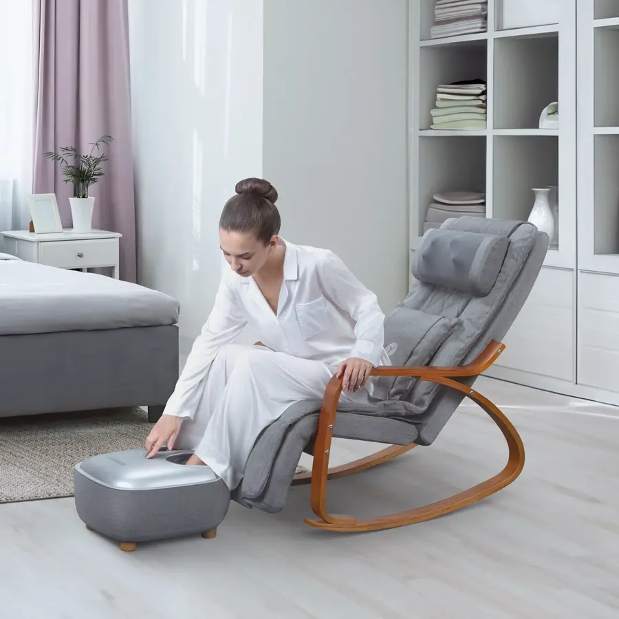 Подставка для ног имеет 5 положений для регулировки. Разный уровень наклона обеспечивает сбалансированную поддержку ног во время массажа.